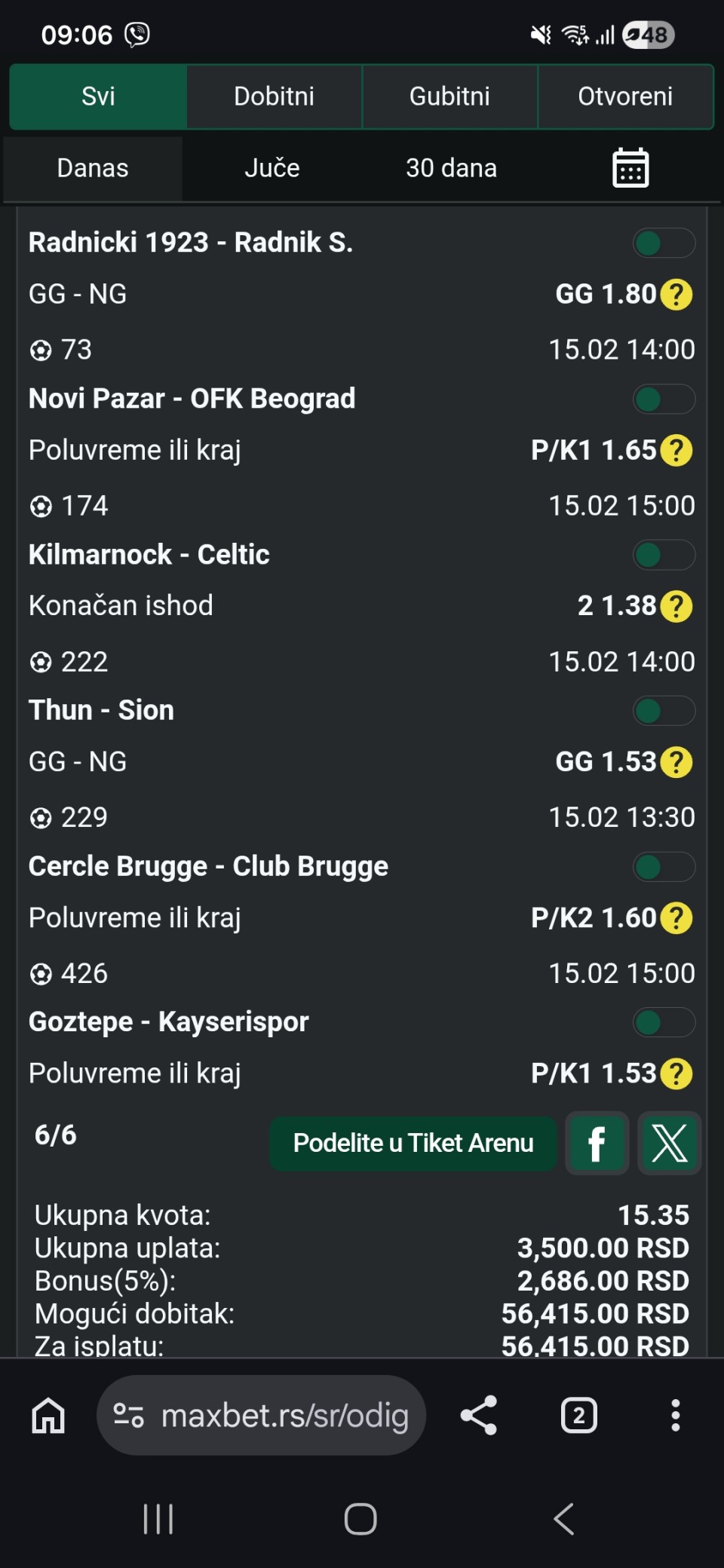 znači danas ne jurim dublove i kvotu 2+ pravim pauzu