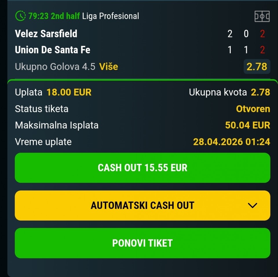 Čist kec kvota će verovatno do početka utakmice biti oko 1.2.