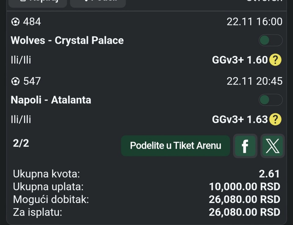 Pada kiša tako da će i teren biti klizav i teži za golmane, ali i lakši za greške. Mislim da je ovo baš dobra kvota za ovaj tip