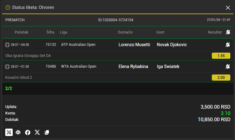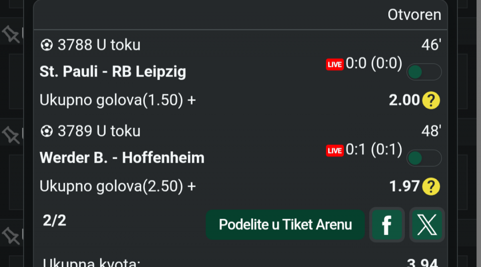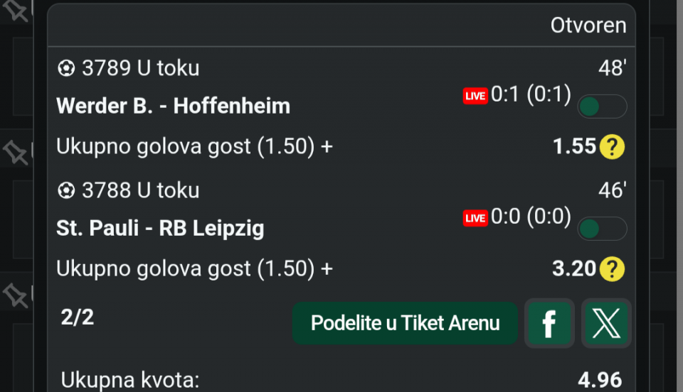 tip: 1X (21 minut trenutni rezultat 0:0)