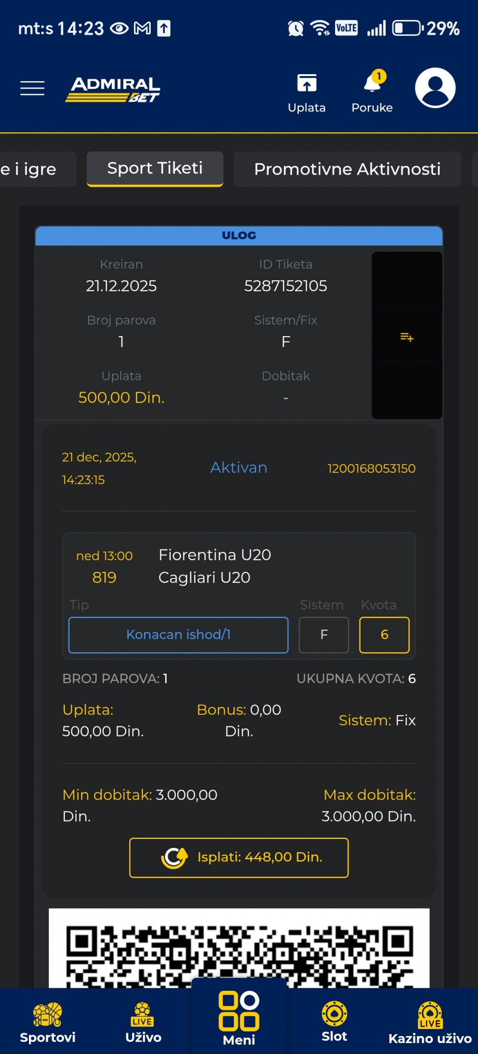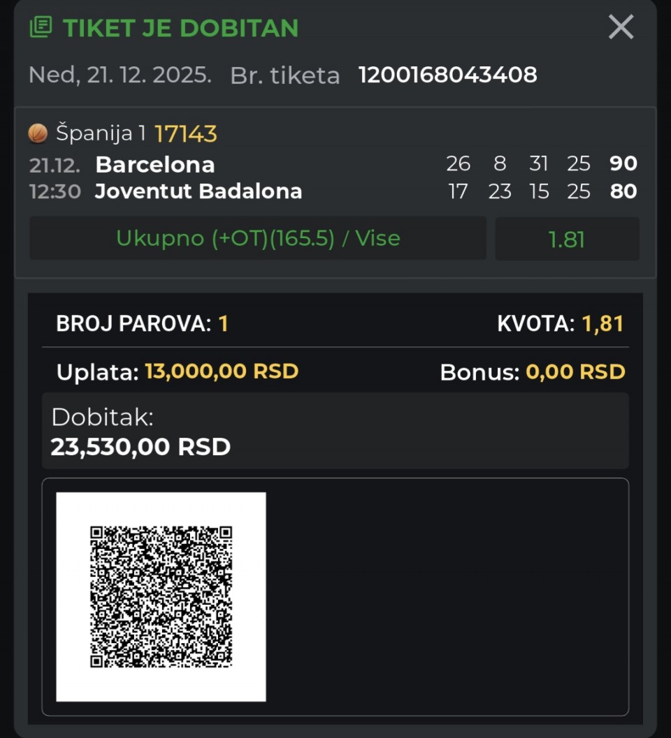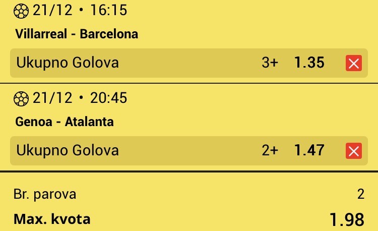Iskreno, baš mi se sviđa ova opcija. Ako imate još neku opkladu za ovu utakmicu, napišite u komentaru.