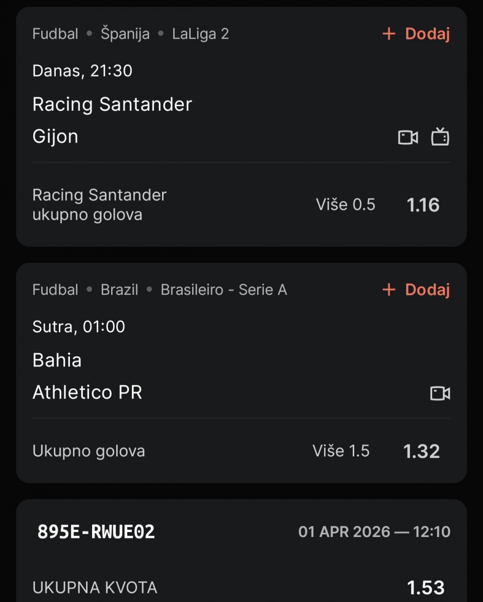 Bahia je dozivela poraz od Rema u proslom kolu, tako da veceras ide po sva 3 boda. Ocekujem njihov ofanzivni pristup od samog starta, medjutim na drugoj strani je Athletico PR. Tim koji je 2. na tabeli i u odlicnoj su napadackoj formi. S obzirom da Bahia igra ofanzivno na domacem terenu, samim tim ostavice prostora pozadi, gde Atheltico PR zna to da iskoristi. Igram G1+, kao i brata Viverosa mog omiljenog napadaca u Brazilu kog moram da ispostujem.