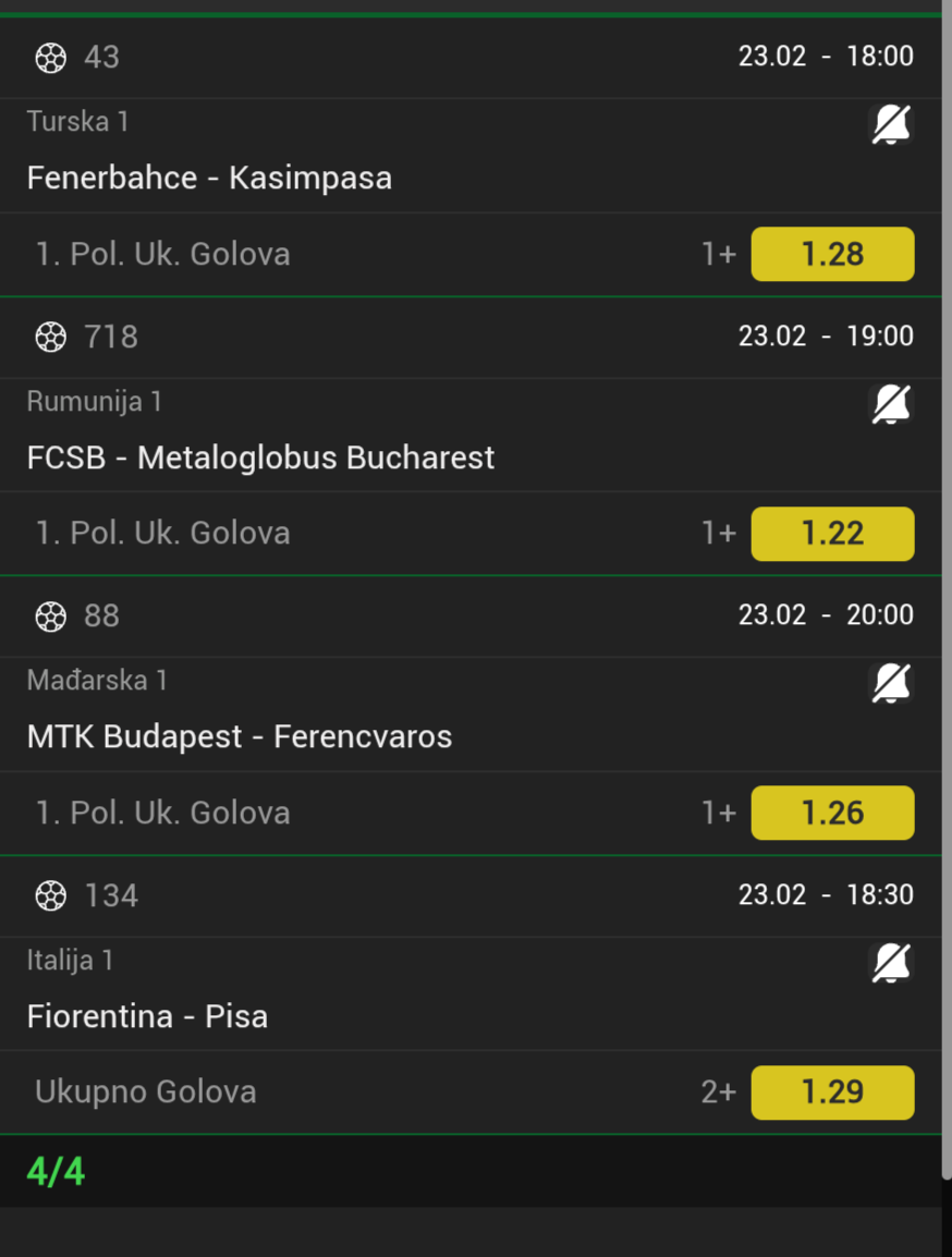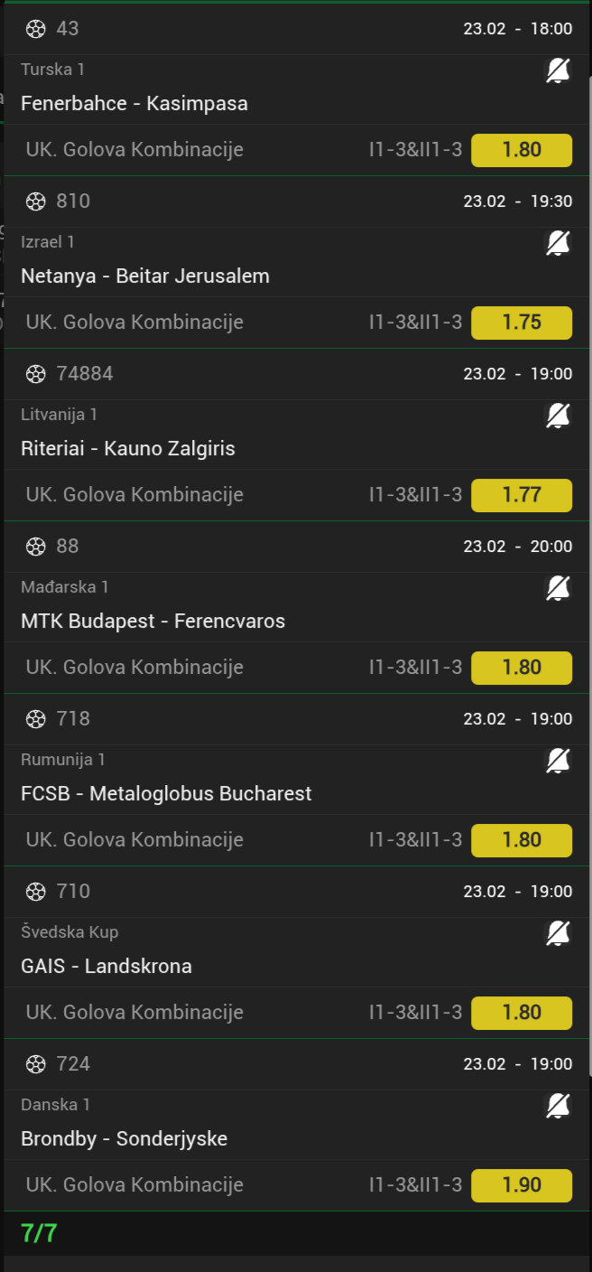 Obavezno probajte obe utakmice prelaze kako iz 2-1 tako i iz 1-2