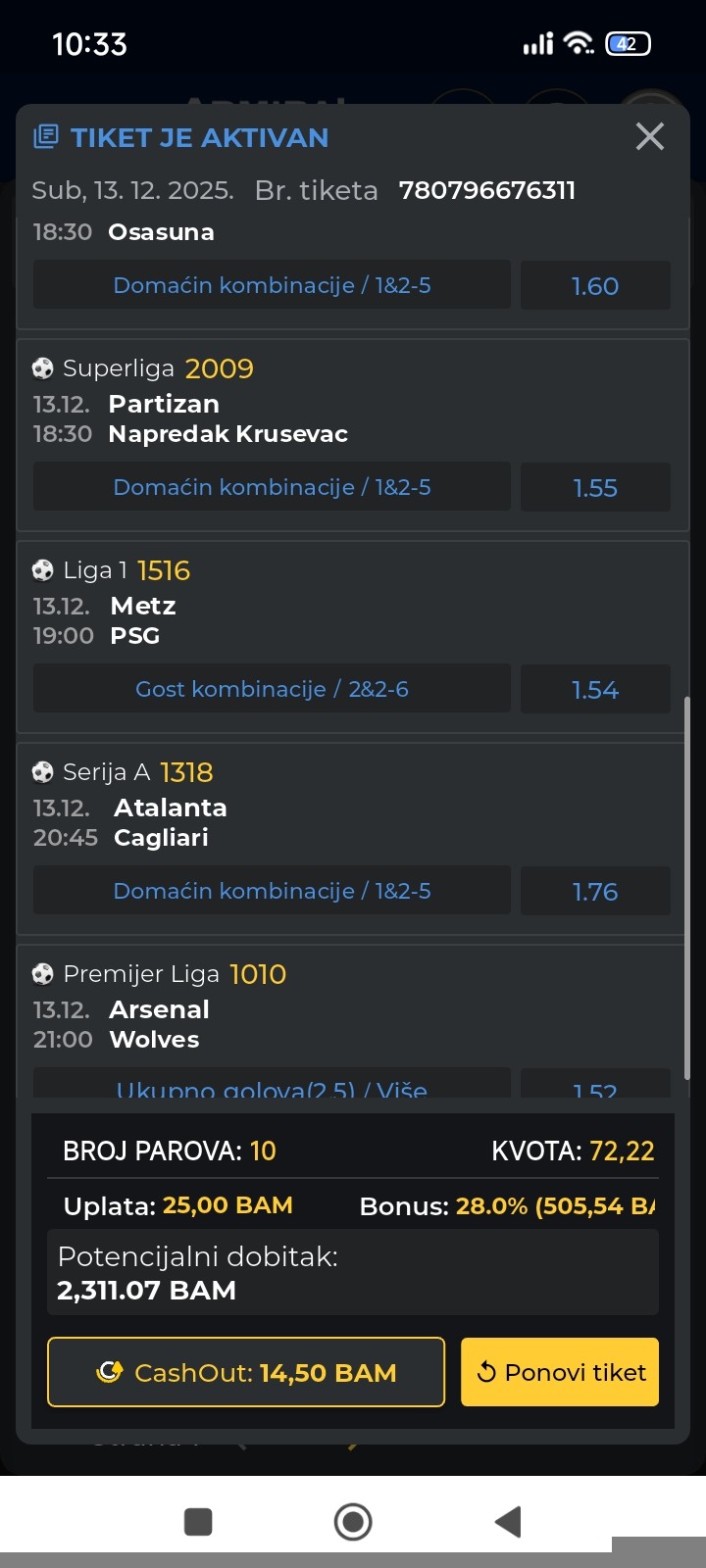 Dzero Tu sam odustao... 5 1 imaju prvu, Midtjland ima i evropu... Moze lako da odmara par igrača a moze i da pošalje i prvu... Ako nameste za klad bude 1-0 i svi izduvali... 16 minutes ago