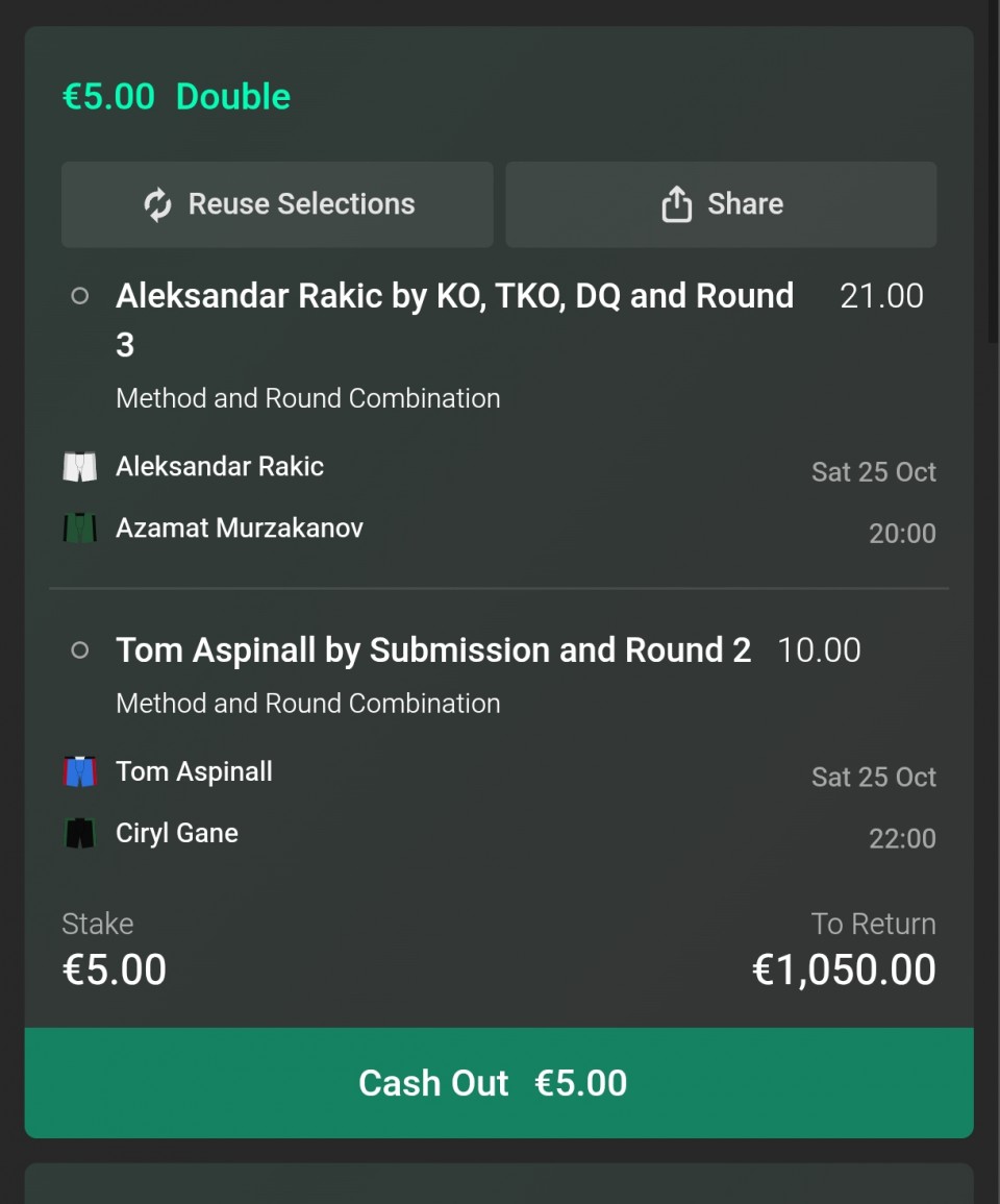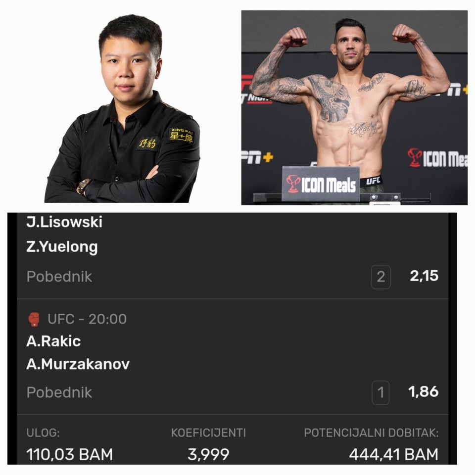 🥊UFC - Iskreno ne pratim, ali moj prijatelj je veliki fan ovog sporta. Naime prati Aleksandra i kaže da je u sjajnoj formi i da je odradio strašan trening. Naravno to ništa ne mora da znaci, ali pošto je napad na pojas svakako je vrijedan pokušaja.