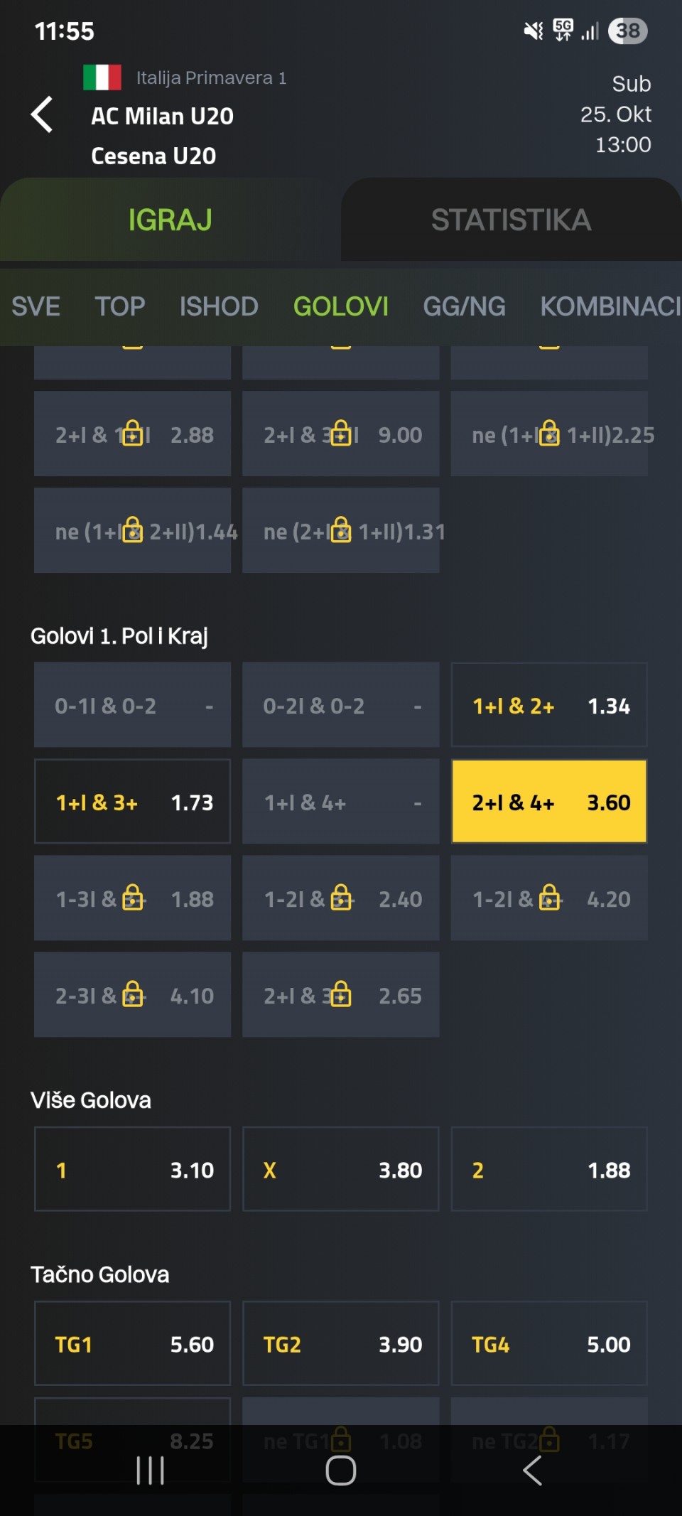 Malo htabriji...ali tip dana definitivno....za jos hrabrije moze i 5+ 6+ +7+...dobre dvije ekipe...ocekujem bolju igru Milana jer je lose startovao..Srecno svima i hvala!!!