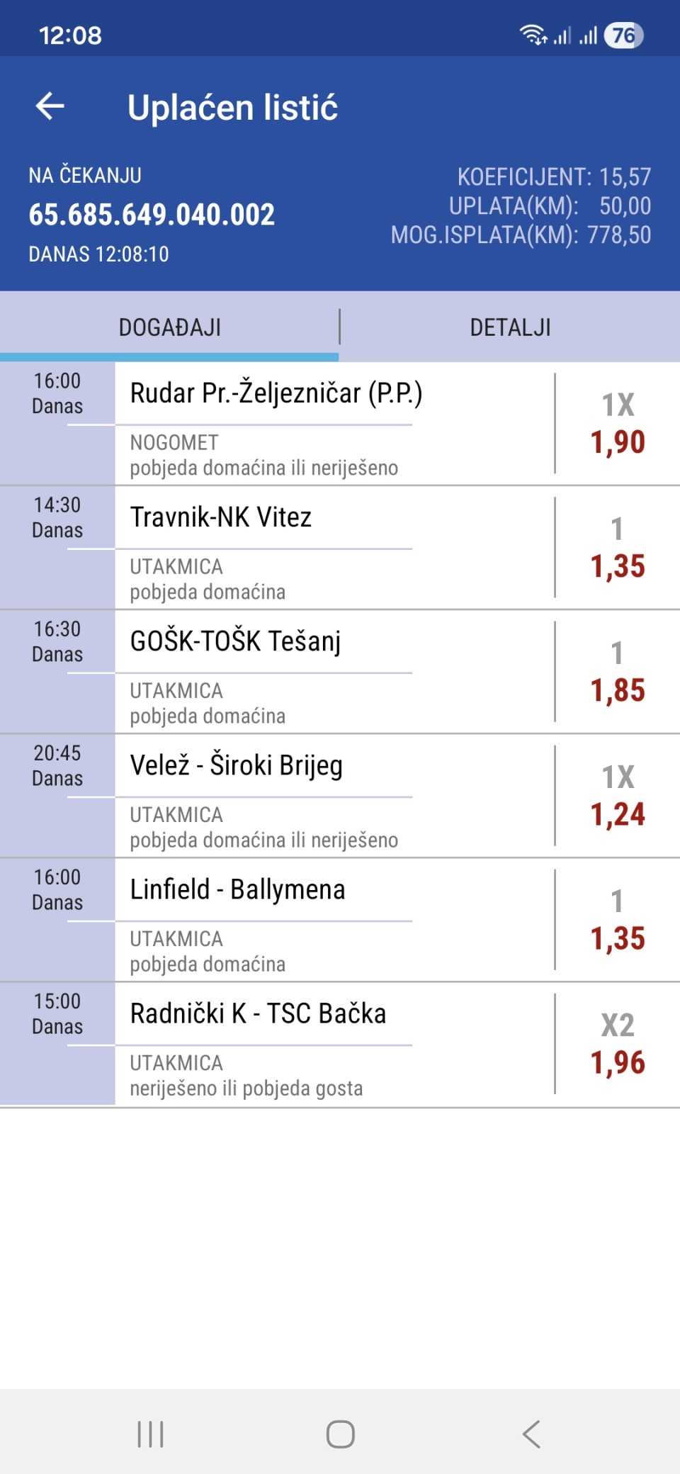 Probaću na sitno sledeći dubl, utakmice počinju u 13h.