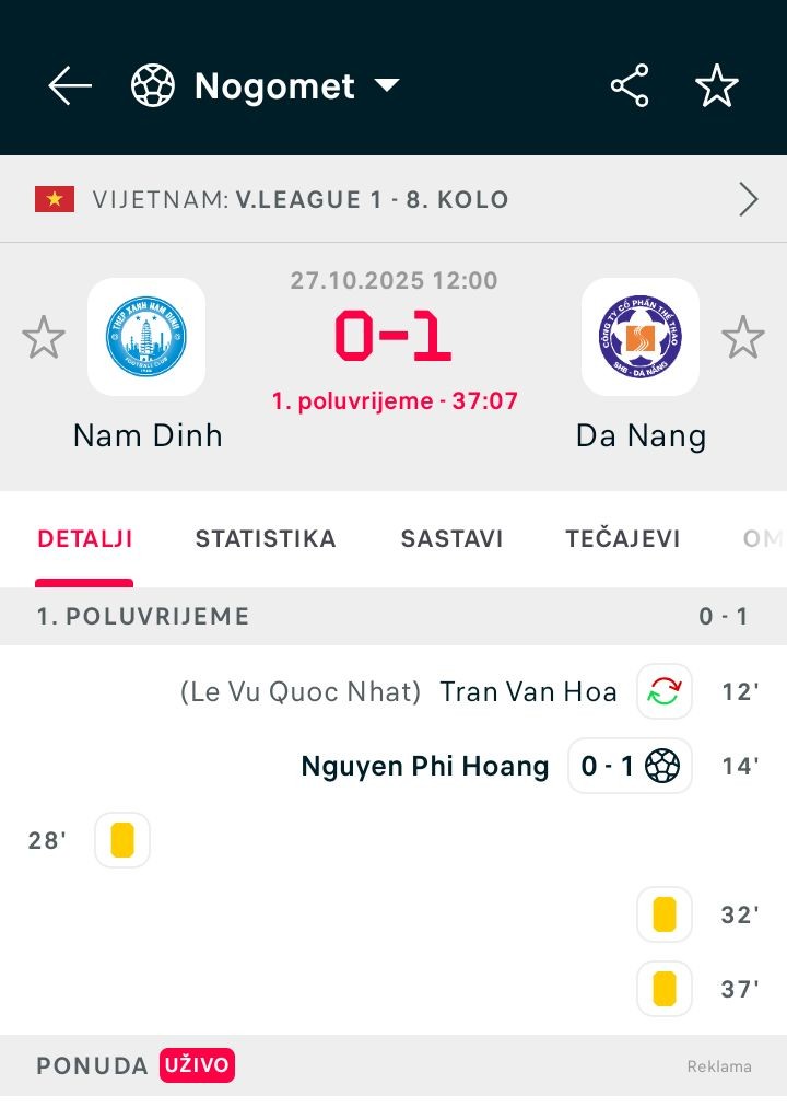 🇻🇳 12:00 Nam Dinh - Da Nang G1+ (1.67)/ GI1+ (3.00)/2-1 (25.00)