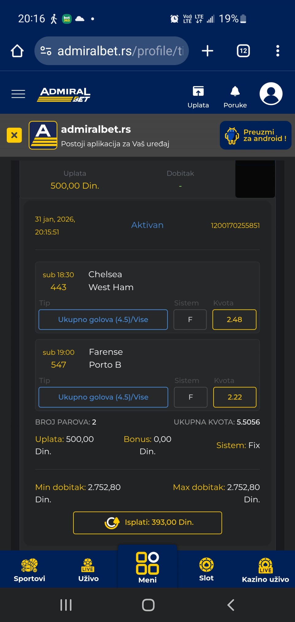 Prethodna utakmica je došla iz 2u1, sada očekujem vraćanje.