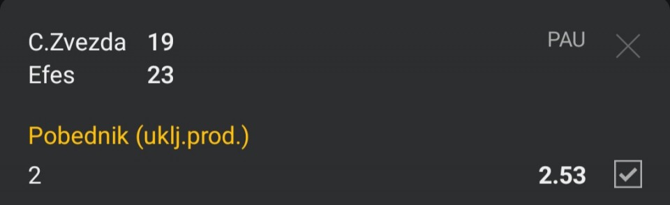 5. korak Fenerbahce - Partizan alt157.5+ (1.50) 81:78 ✅