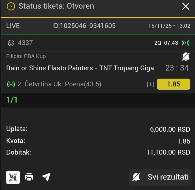 Dok je poluvreme idu velike uplate na X, kod mene izbacili iz ponude tako da ako igra neko neka proba na sitno