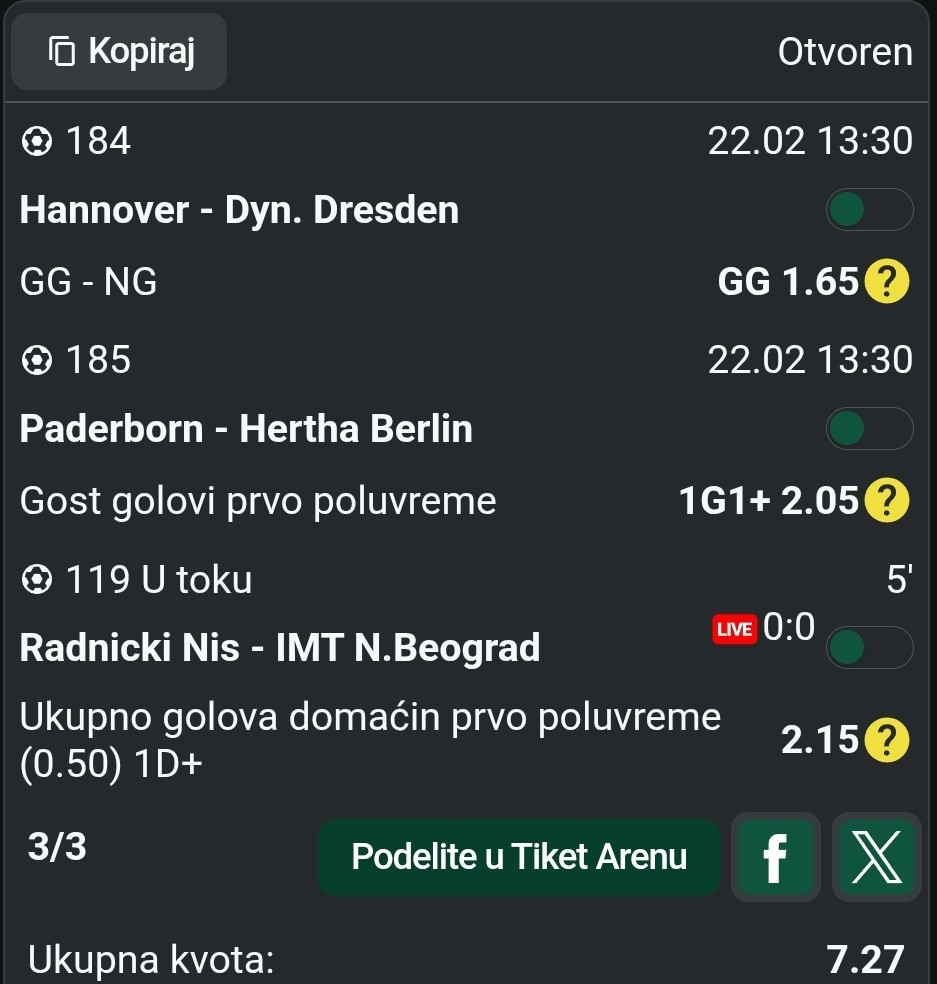 Na Engleze imas valjda Tiket od 500.Dinara.za 2.Tacna rezultata .