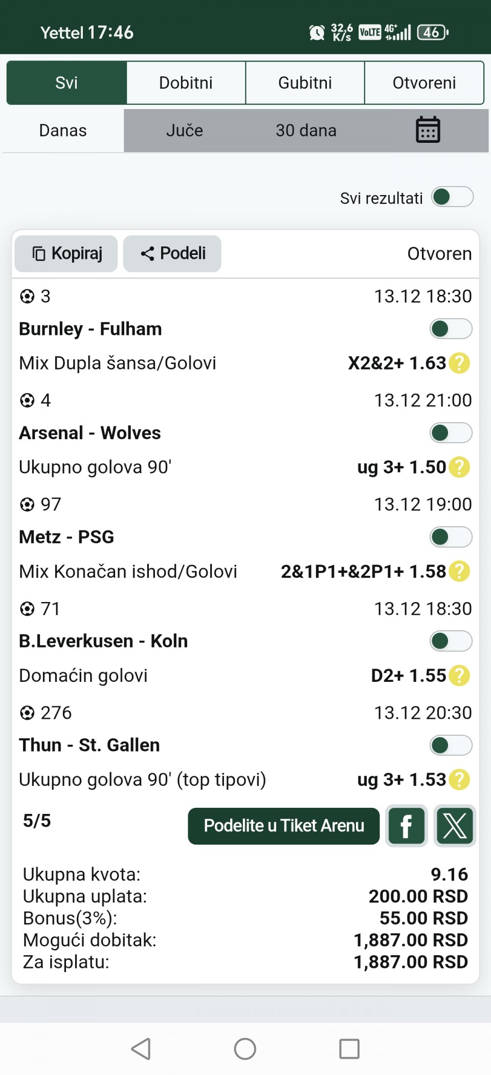 Uzdravlje i da vam se danas zeleni sve što odigrate.. Red je i da kladionica ima crnu subotu😉