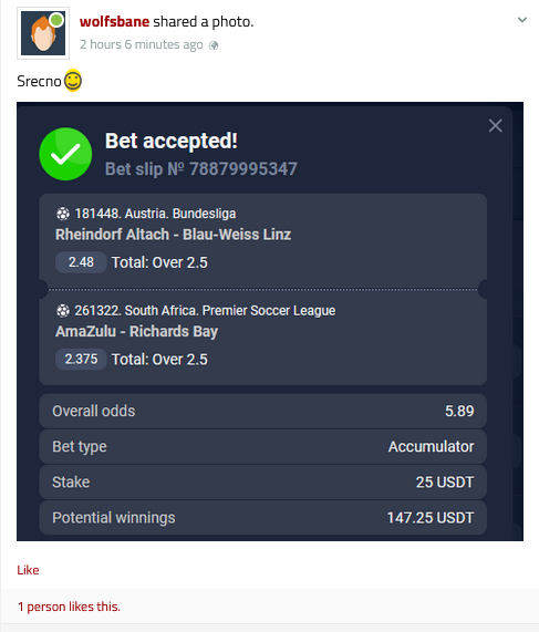 tip: over 1.5 (68 minut trenutni rezultat 1:0)