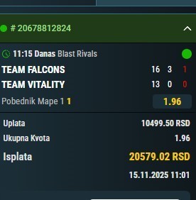 Ja uzimam kao glavnu opciju 6+ kartona 1.80 kvota a imate i sigurniju varijantu 5+ oko 1.40 kvota.