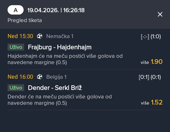 tip: 1X ( poluvreme trenutni rezultat 1:2)