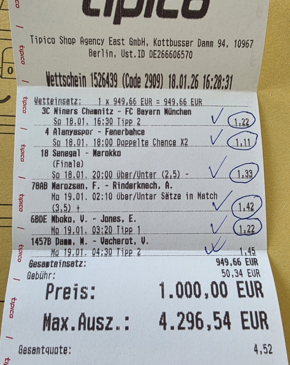 Po mom proračunu, granice su omašene za oko 5 poena i matematički imamo prednost u odnosu na kladionicu, na ovom tipu. Srećno svima!