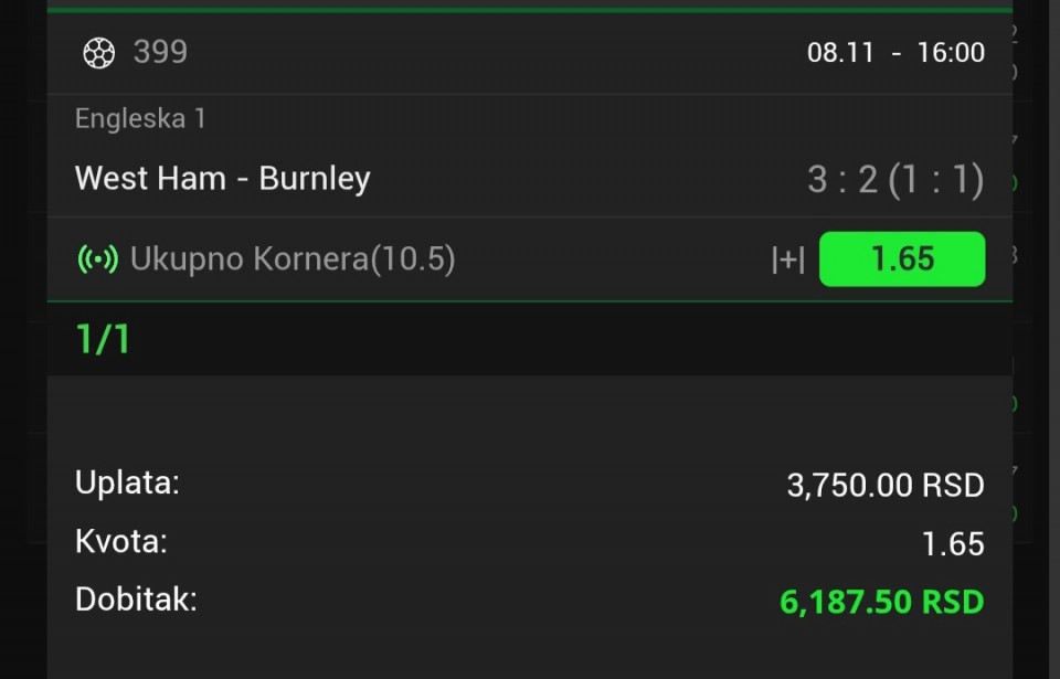 TIP: 5+ kartona @1,66🟨 FT 5 kartona #WIN✅️