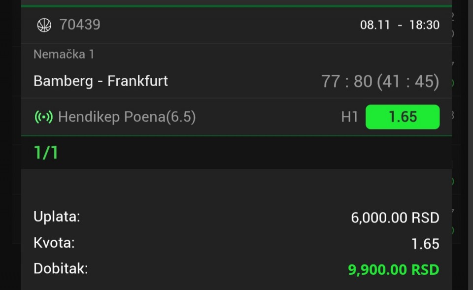 #Live HT Bamberg - Frankfurt 41:45 1 1,55