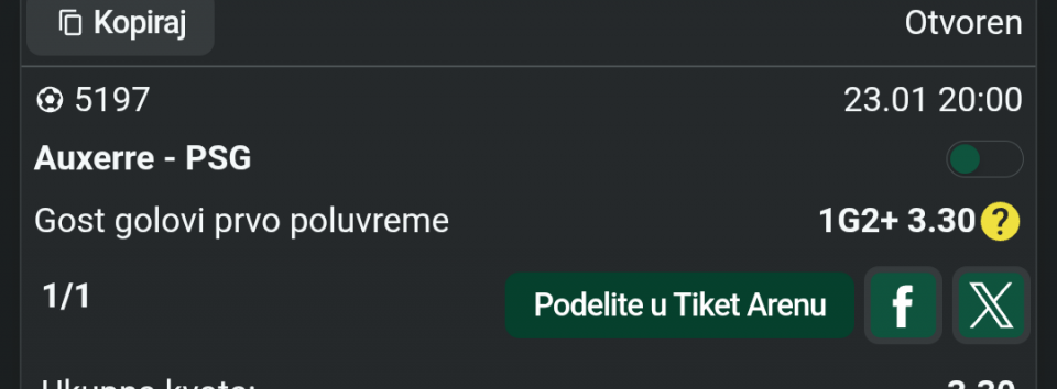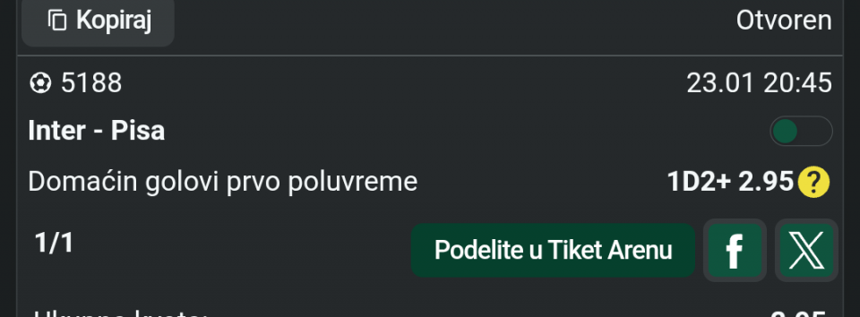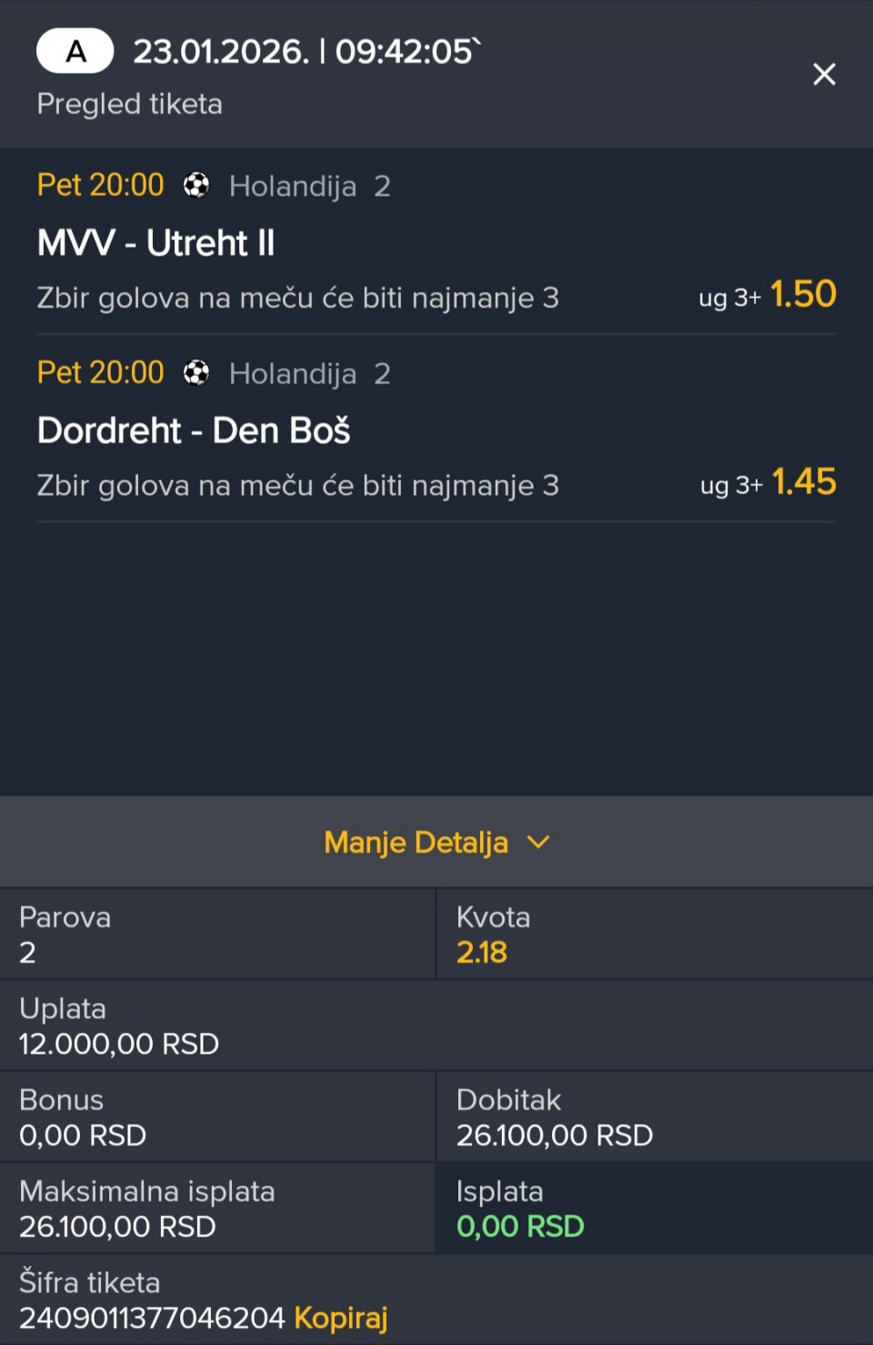 zbroj golova Nikola.Roganovic OVER 2,5 GOLA KOEF 1,38