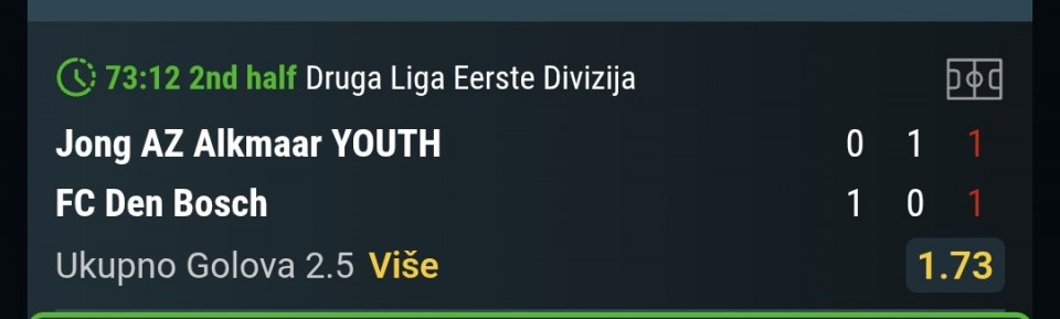 Live Jong Ajax 3,5+ 1,60 ,gost 0-1 taman pri objavi,manji ulog,na sitno prelazi.u oba smera..Sretno ko prati Maxbet