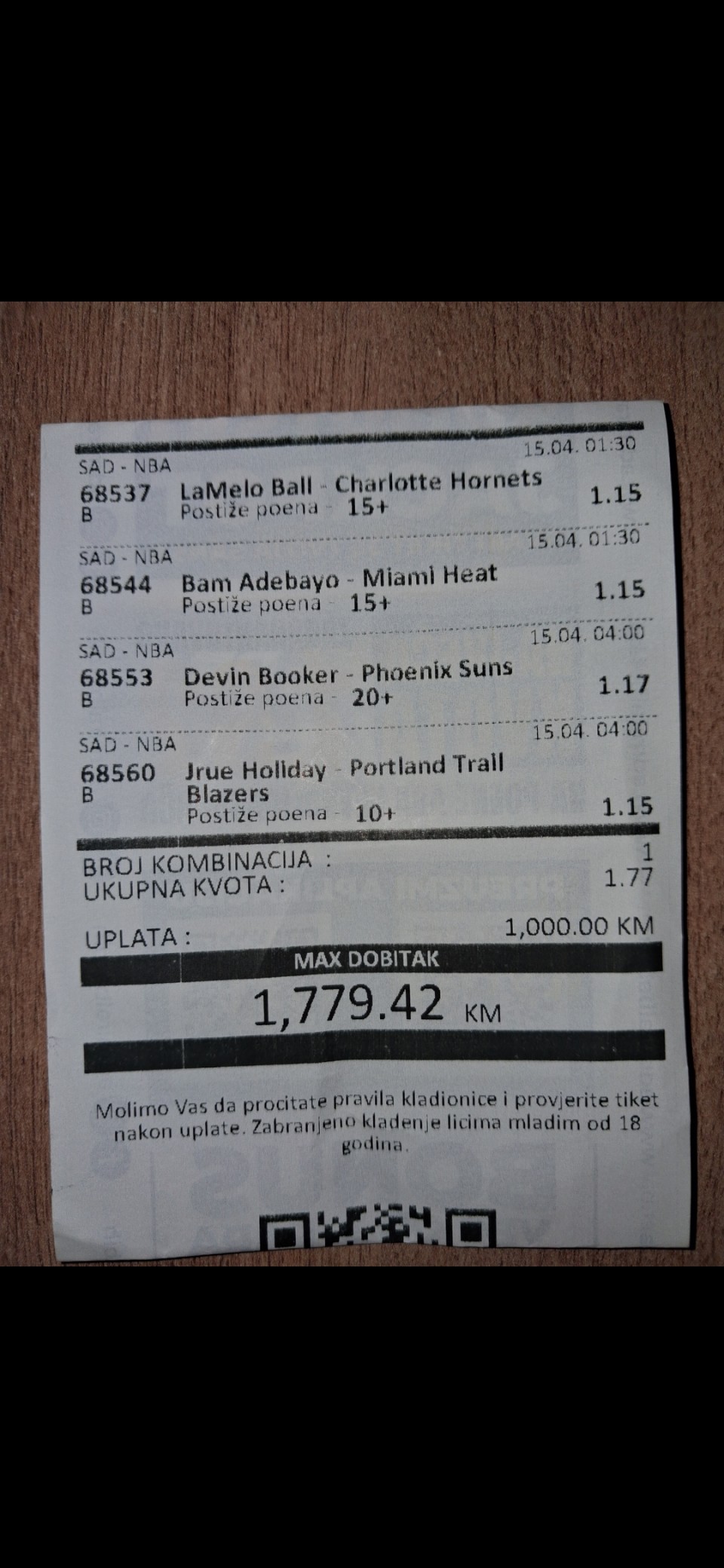 | Teletovic33 (1) | (26/40) | 65% | 55.36 | |