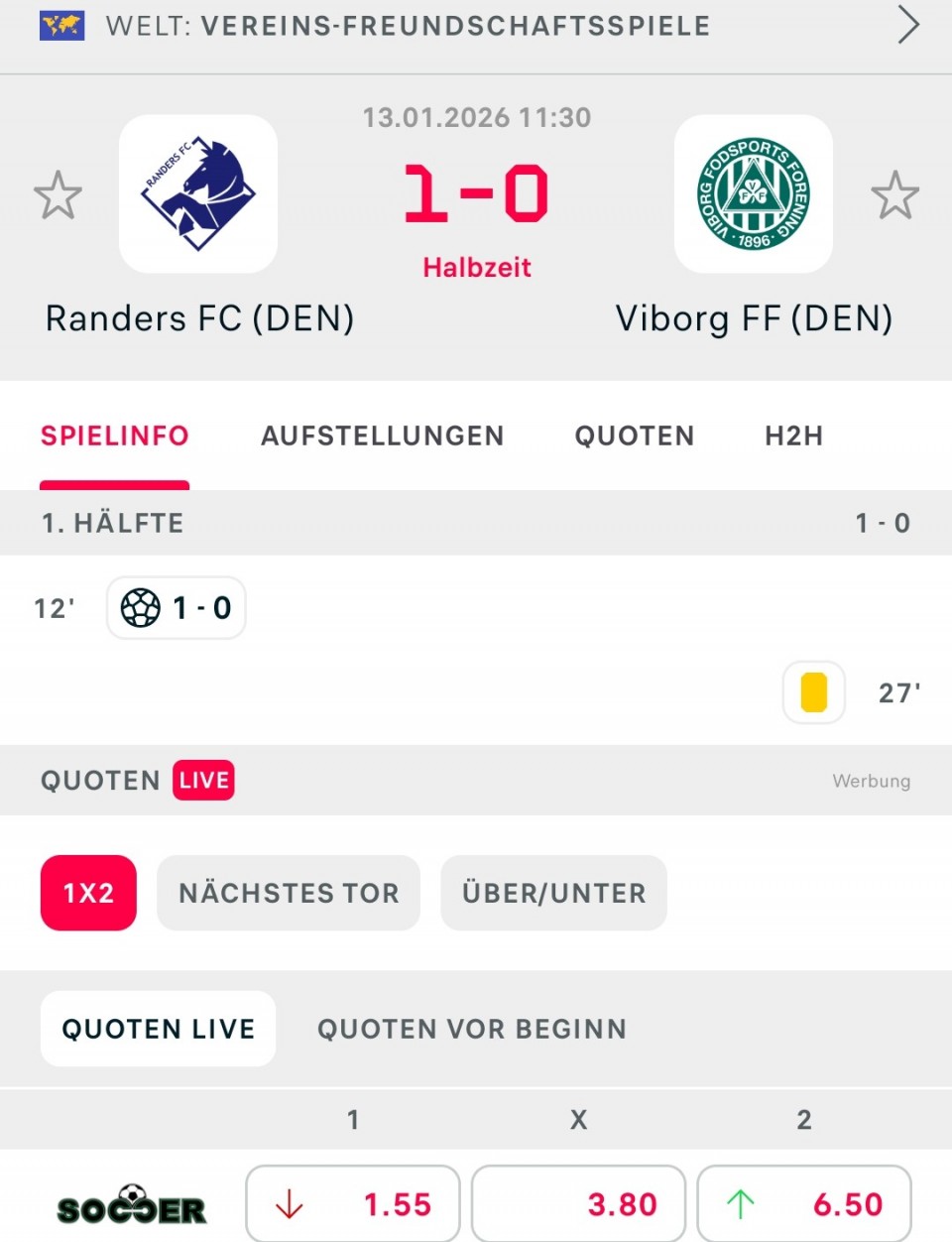 🇩🇰 11:30 Randers - Viborg GG&II1+ (1.60)