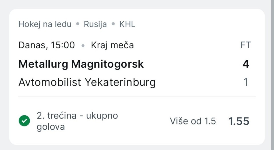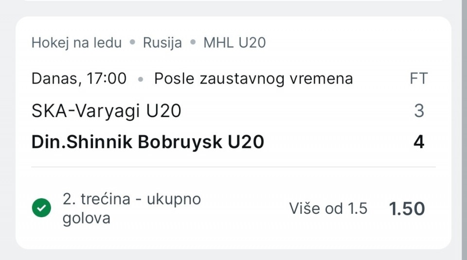 Ovde nema nikakve dileme i Jesenice danas moraju pobjediti ako se ocu nadat na playoff! Gosti su u grupu gubitnika dosli sa 3 boda na drugoj strani Jesenice sa 0 bodova!! Jesenice imaju dovoljno kvalitete, da pobjede goste kojima sve zavisi od svog prvog napada dvojice finskih stranaca i Latvijca Lipsbergsa!! Koeficient je dobar, moje mislenje, da Jesenice rjesavaju ovu utakmicu i uzimaju tri boda, koji su jim krvavo potrebni !!!