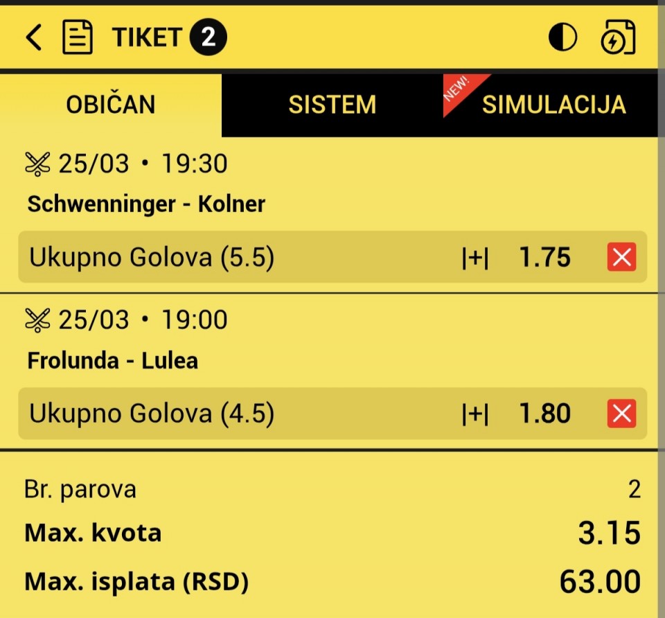 Danas samo jedan mec , pa i nije neki izbor ali da probamo 2,3 igraca.