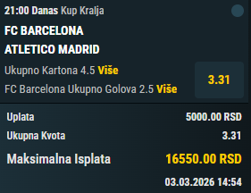 Ako Barselona misli da prođe dalje, ona jednostavno mora da postigne bar 4 gola. Da li je to moguće protiv Atletika? Pa iskreno, nisam 100%25 siguran. Ali da će pokušati sve da dođu od nečega što je na prvi pogled nemoguće, u to...10. nedelja - 1. korak ⚽