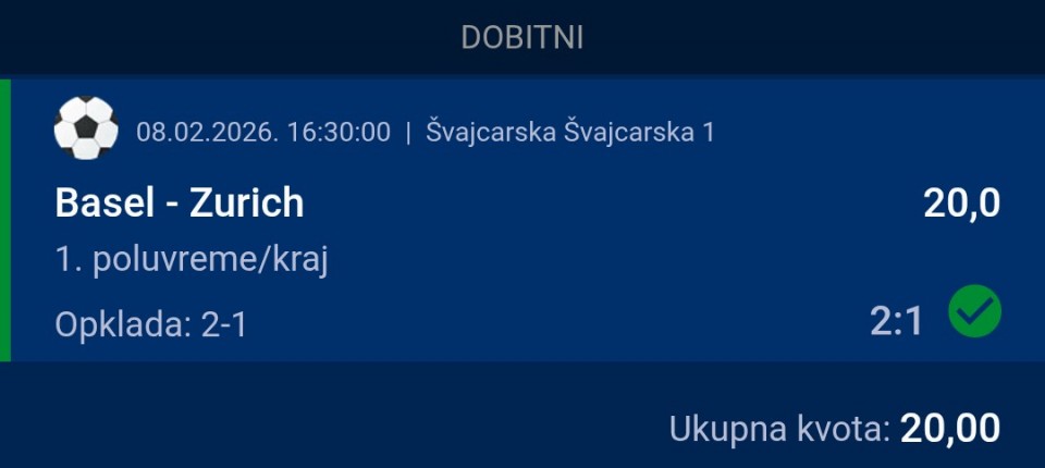 Ovi predlozi su bili u komentaru. Spance sam pokusao da eksperimentisem. Delovalo mi je da je mozda pocetak neke saradnje. Pa sam hteo da vidim da li ce danas da ponove isti rezultat. Na kraju sam i ovim zadovoljan. Dubl kornera mi je bio fiksčina... Show more