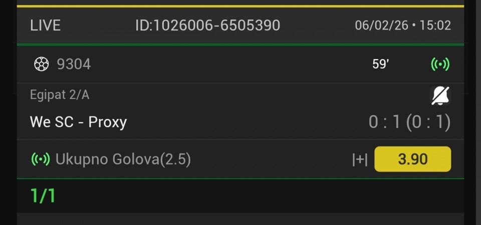 tip: over 0.5 (65 minut trenutni rezultat 0:1)
