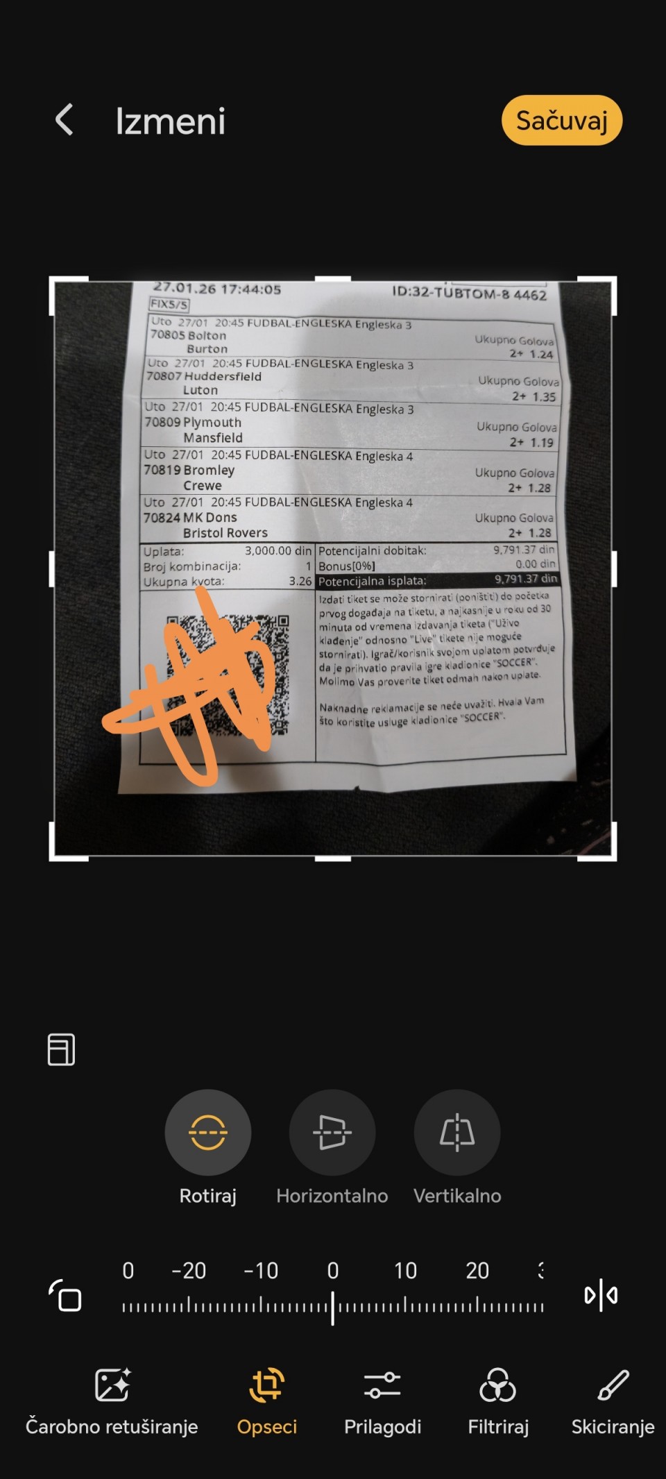 27.01.2026. 20:30h St. Pauli - RB Leipzig; tip: X; kvota: 3.65; uplata: 360,00 din.; isplata: 1.314,00 din.