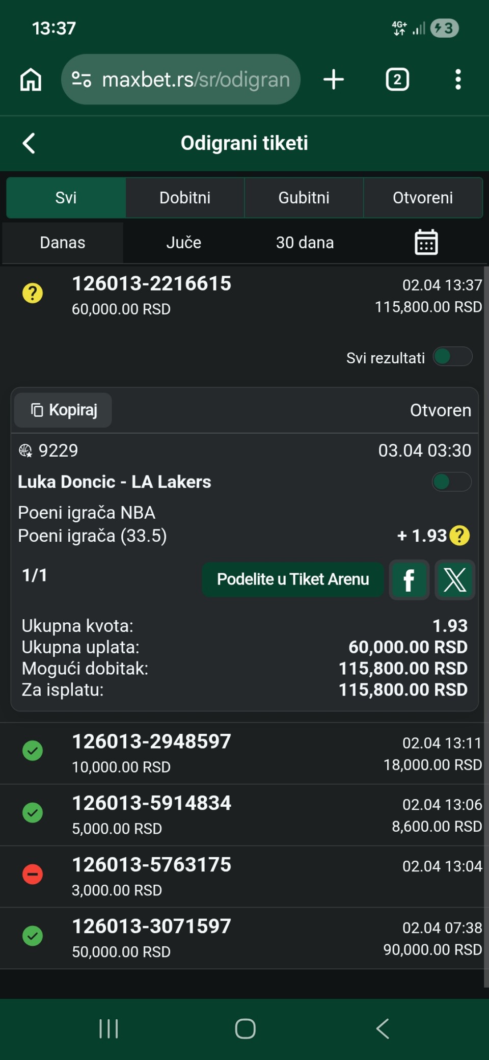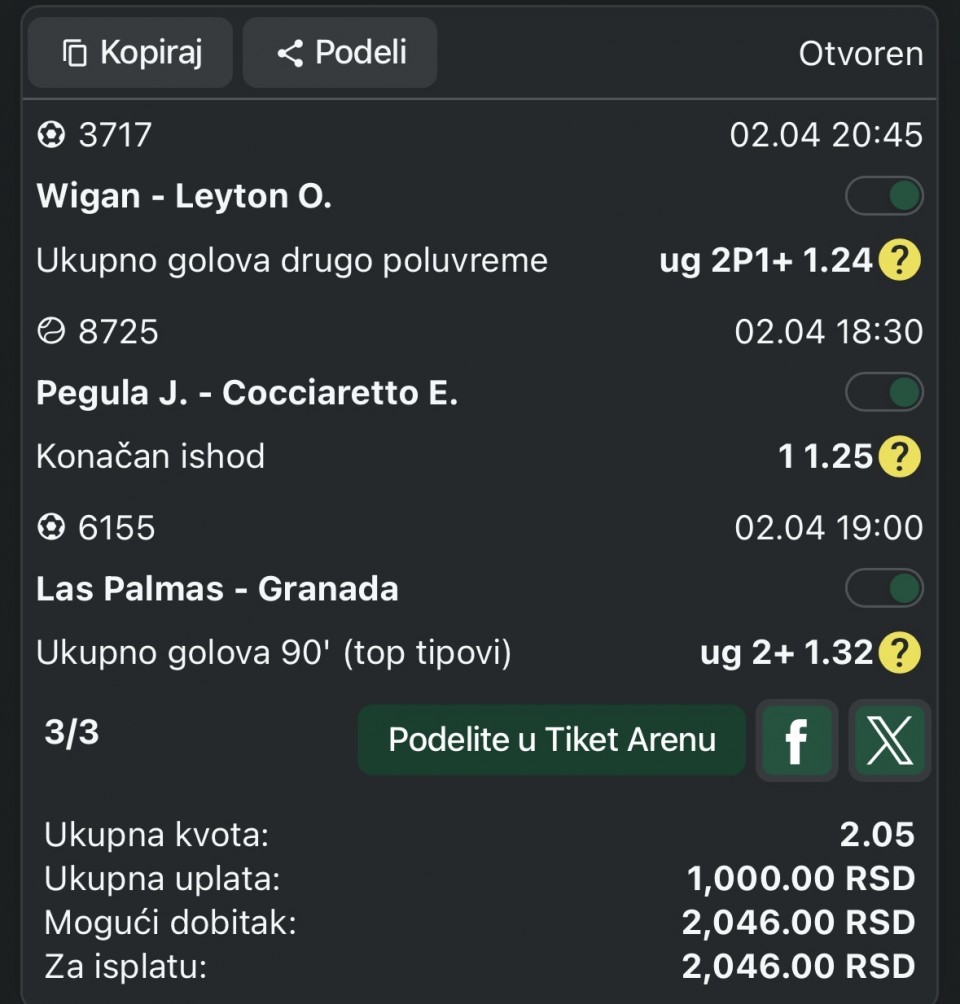 Dobar dan, danas dva tiketa sa derbija i mozda kasnije iskombinujem ostale meceve EL