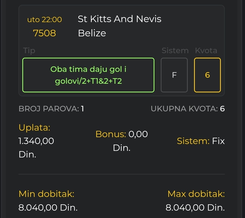 Albanski kup uzivo, gde idu uplate, ja sam odigrao samo 2 par jer je samo to bilo u ponudi po kvoti 12.50