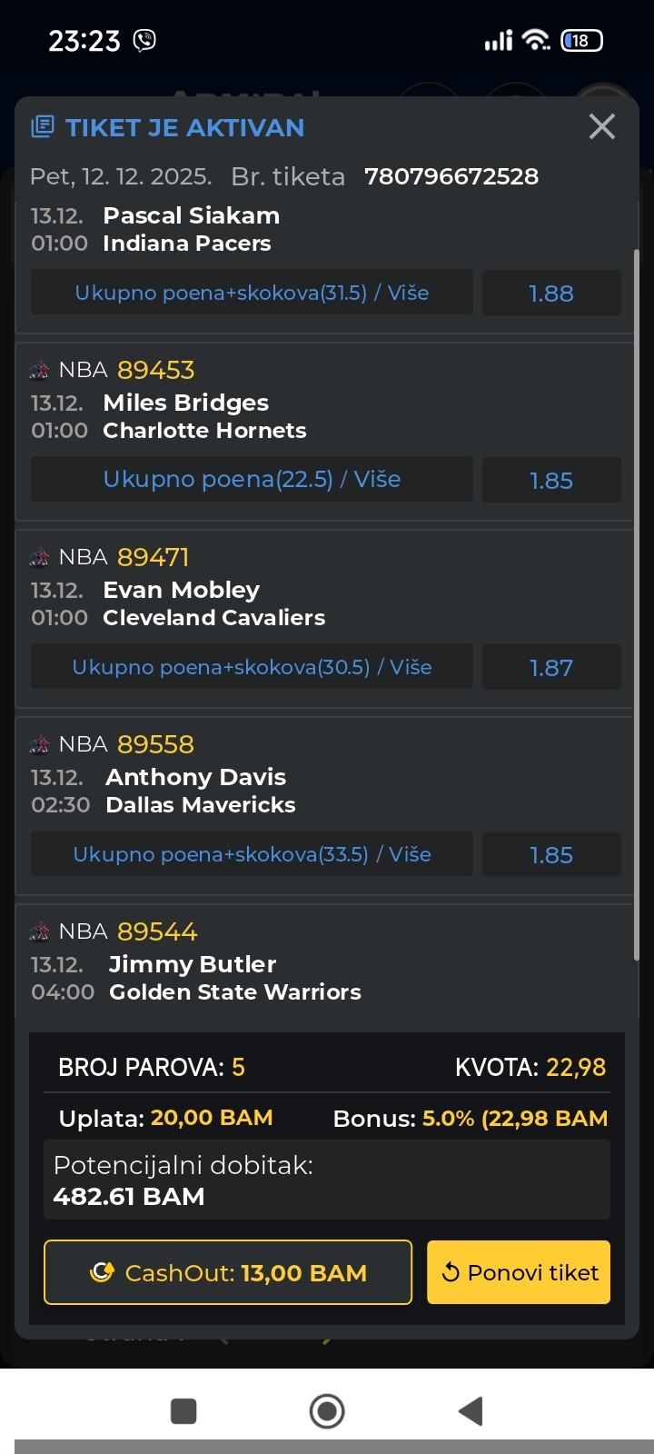 Nastavljamo sa NBA iako padamo svaku noc ali ne i veceras, zadnji je + ovaj Šakirin bivši zagondzija.