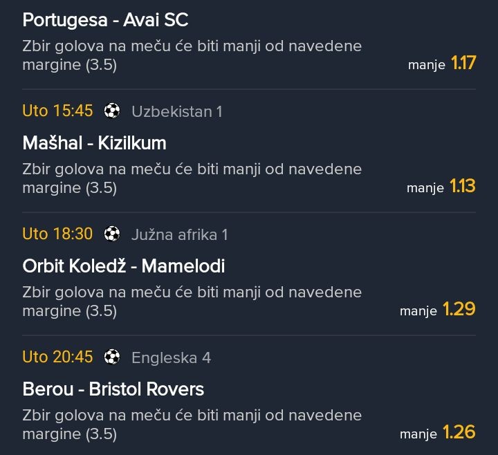 Japanci prvi u grupi od 12 ekipa , Zelja u prednosti dosta igraca ne igra za slogu ima i u novinama da oslabljena pre dva dana im dali 3 komada sa ful sastavima. A Atletiko zadnjih 10 godina nisu imali ovako fino skockanu ekipu nije totenhem kao...Japanci prvi u grupi od 12 ekipa , Zelja u prednosti dosta igraca ne igra za slogu ima i u novinama da oslabljena pre dva dana im dali 3 komada sa ful sastavima. A Atletiko zadnjih 10 godina nisu imali ovako fino skockanu ekipu nije totenhem kao sto je bio. Al zato sam na japance i atletiko stavio anytime bilo kada u prevodu. Ne budimo alavi dosta i 2k cisto. Srecnooo ako neko uzme neki par. - feeling rich Show more