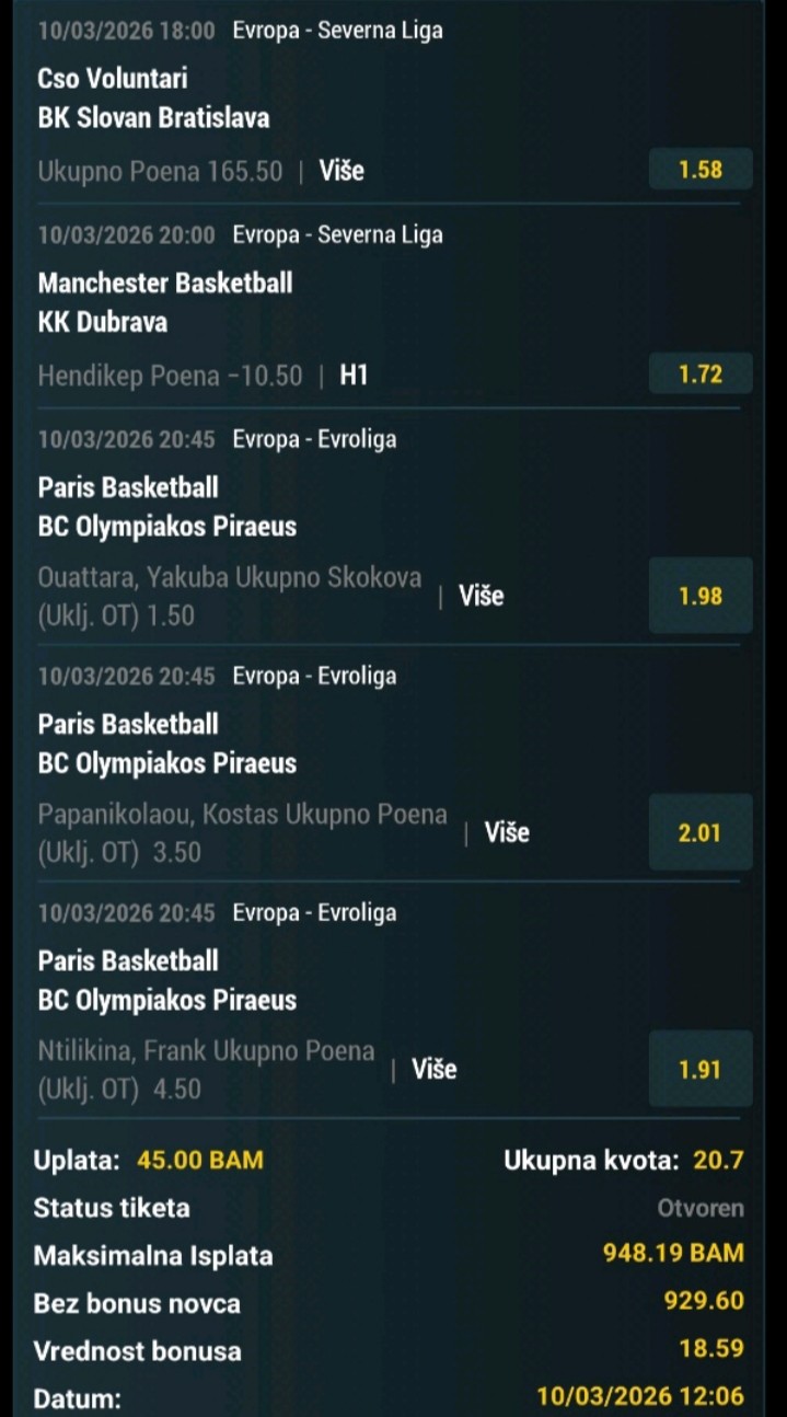 Vekić ne bi trebala imati problema sa precijenjenom Marčinko(čudo da je i ovdje nisu postavili za favorita) kao protiv Siegemund prije neki dan, gdje sam hladno...Tenis dubl za danas: