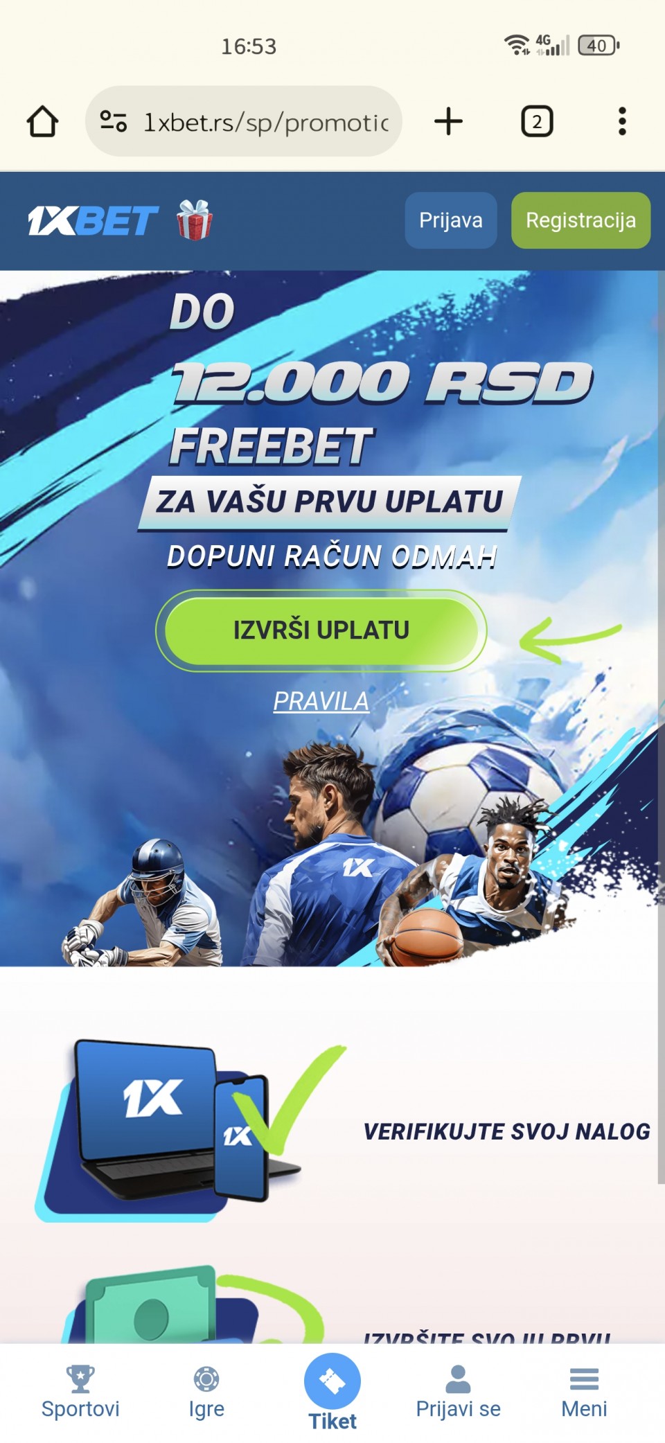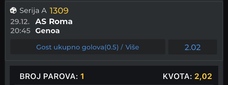 Jel neko uzimao bonus? Vidim da osim 4 meca po 1.60 ne postoji nikakav dodatan uslov i smislu da mora da se odigra uplacen depozit itd.. ima neko iskustvo? Dajte jos neki predlog gde daju dobar bonus dobrodoslice na prvi depozit ali bez ogranicenja...Jel neko uzimao bonus? Vidim da osim 4 meca po 1.60 ne postoji nikakav dodatan uslov i smislu da mora da se odigra uplacen depozit itd.. ima neko iskustvo? Dajte jos neki predlog gde daju dobar bonus dobrodoslice na prvi depozit ali bez ogranicenja (tipa obrnuti 7 puta, maximalna isplata tiketa 5000rsd itd Show more