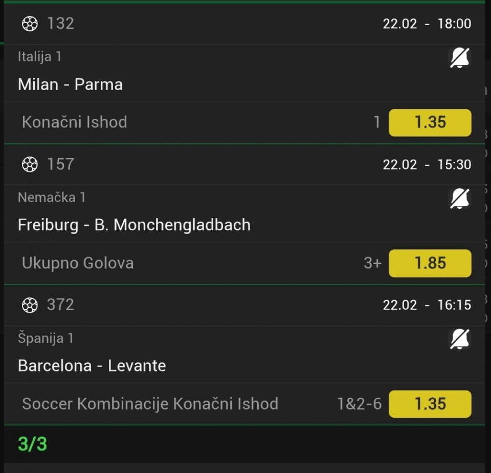 Danas sareno. Ko voli nek izvoli. Licno mislim da je Getafe - Sevilla poklon kvota.