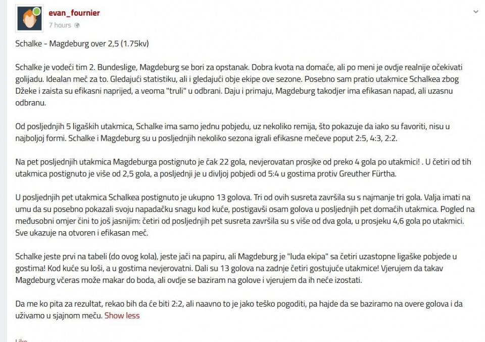 🇩🇪 20:30 Schalke - Magdeburg 3+ (1.73)/ Edin Dzeko daje gol (2.02) ili daje u I poluvremenu (5.90)