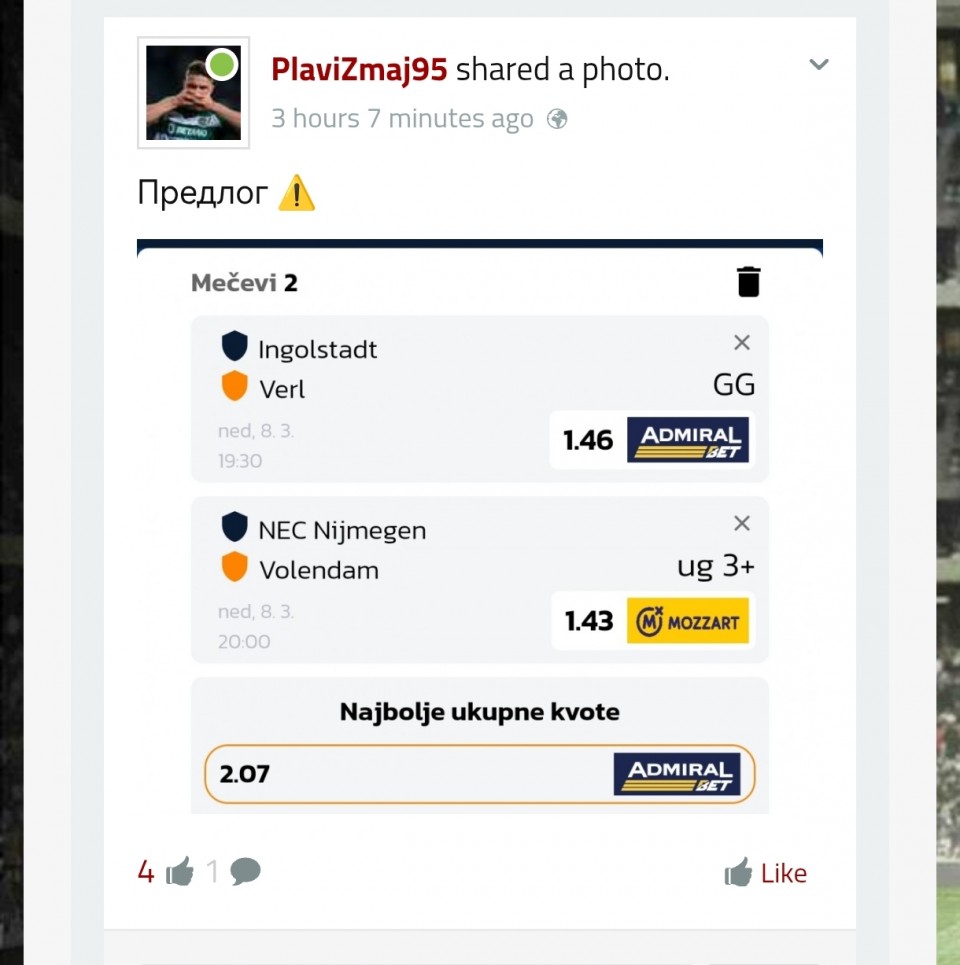 Čestitke OFK Nišu, uspeli su sa remijem da nas preteknu na prvom mestu u poslednjem kolu, jer nas je Index dobio, svaka čast i njima za fer plej, odigrali su pošteno do kraja, iako im nije ništa trebalo, to poštujem! Bila je ovo jako zanimljiva...Čestitke OFK Nišu, uspeli su sa remijem da nas preteknu na prvom mestu u poslednjem kolu, jer nas je Index dobio, svaka čast i njima za fer plej, odigrali su pošteno do kraja, iako im nije ništa trebalo, to poštujem! Bila je ovo jako zanimljiva sezona, za dlaku nam je izmakao direktan plasman u cvajtu, ali nadamo se dobrom raspletu po nas u baražu, srećno svima ostalima u borbama za viši rang, i najboljim strelcima, FUTOGGGG!!!!! Show more
