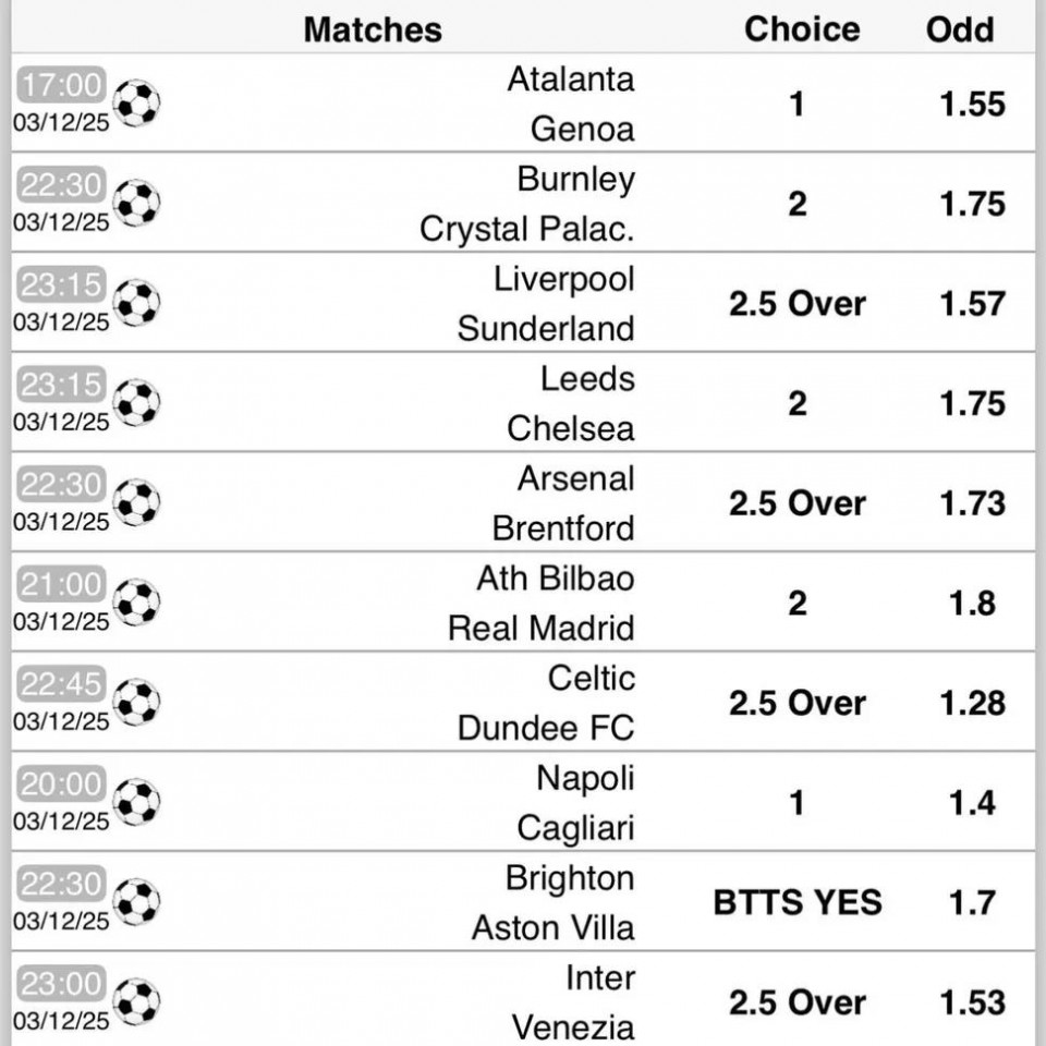 Real veceras dolazi na jedno od najtezih gostovanja u spaniji, cuveni San Mames, velika vecina ovde ocekuje golove, medjutim veliki faktor je da je na poslednjih 7 od 8 duela ova dva tima bilo manje od 3 gola na mecevima, bilbao uvek dobro motivisan protiv reala a pogotovo kod kuce, gde je uglavnom 1 gol resavao pobednika, Real sto se forme tice malo stabilniji ali svakako ne tako ubitacan kakav je bio, ovde mi najrealnije deluje rezultat 0:1 ili 1:1..