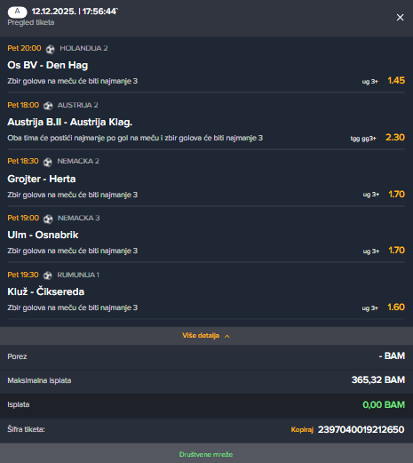 Probacu ovako, svidela ki se ova igra za par dana vise tipova, a kvote realne kao i tipovi. Srecno momci🫡