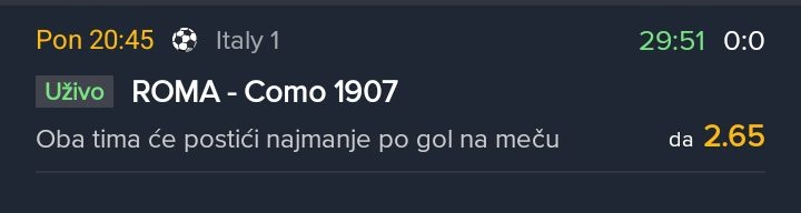 Roma-Como TIM 1+ @1.29 ⚽ 2 hours 15 minutes ago