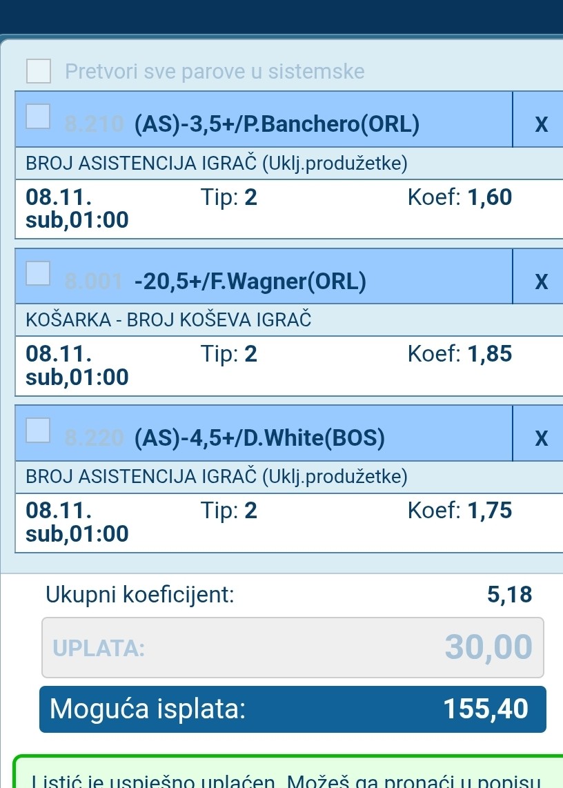 Tiket je bio u komentaru proslog tiketa, mudrost je ipak bila na mojoj strani i odigrao sam werder 0-3 umesto 0-2 gola. Slava ti Bože. Uskoro ide jedan vecernji