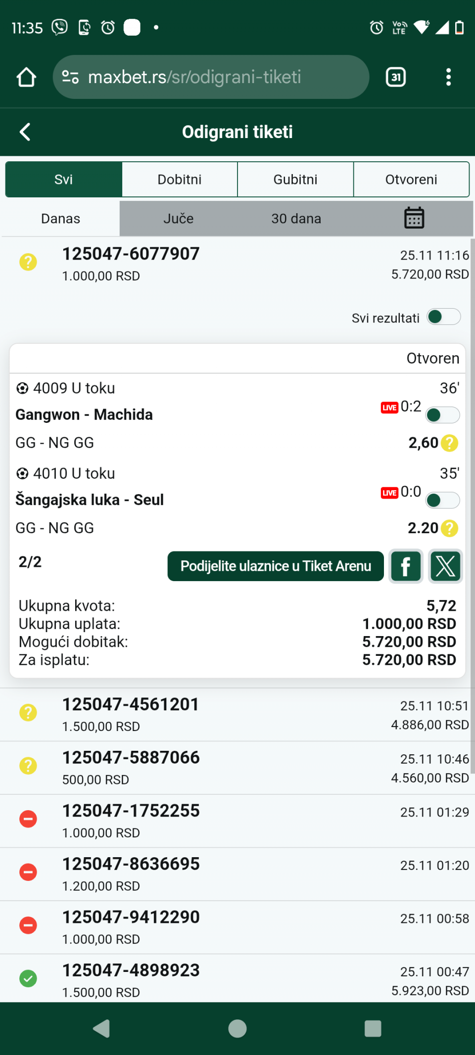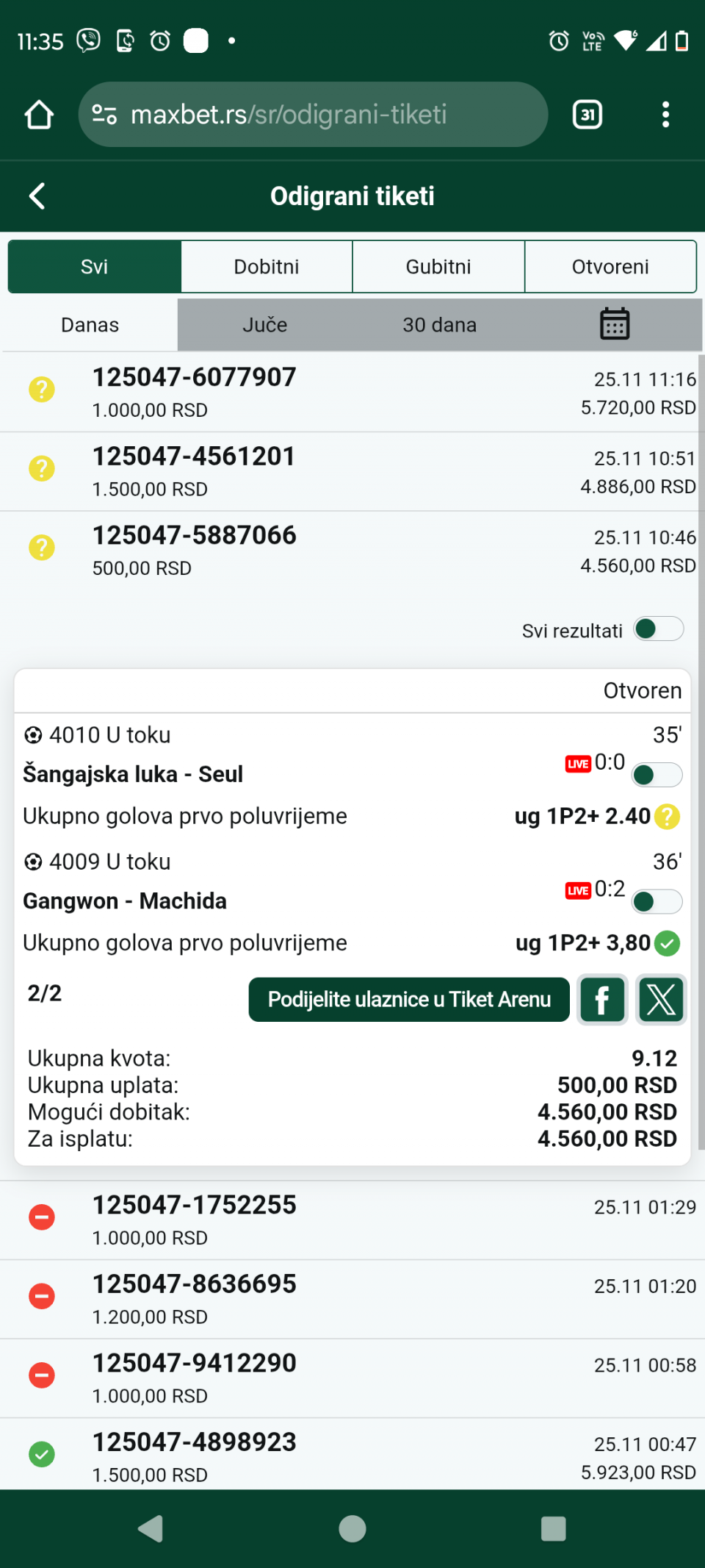 Novembar score 21/39, unit juce -1.52, ukupan unit +4.24