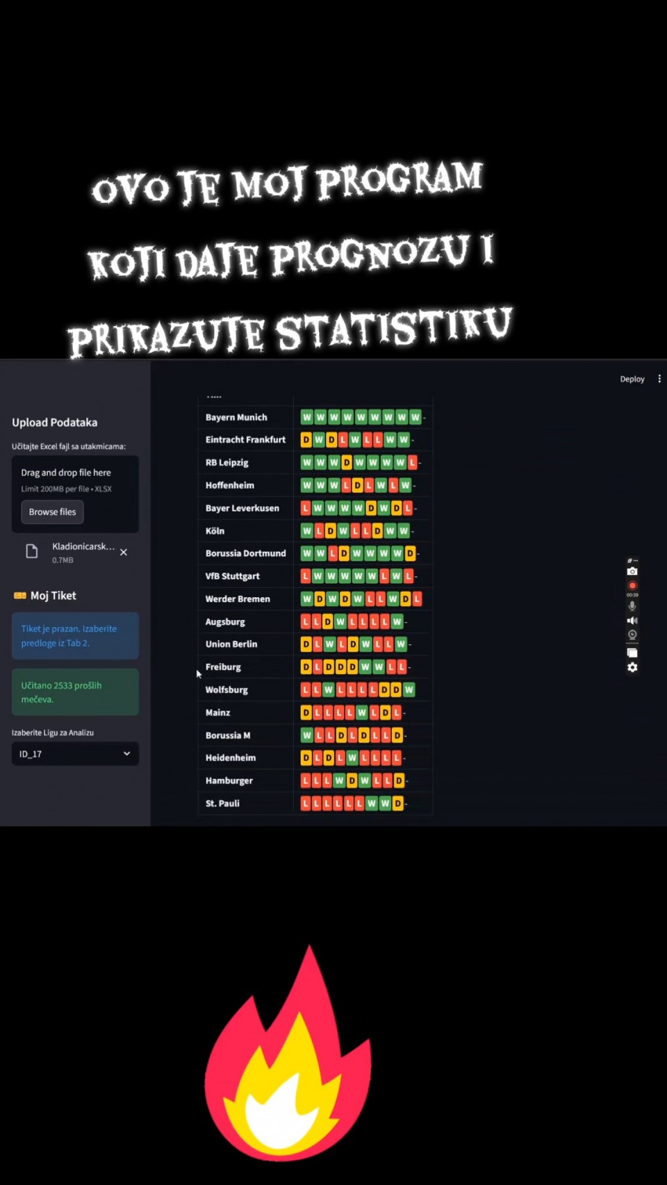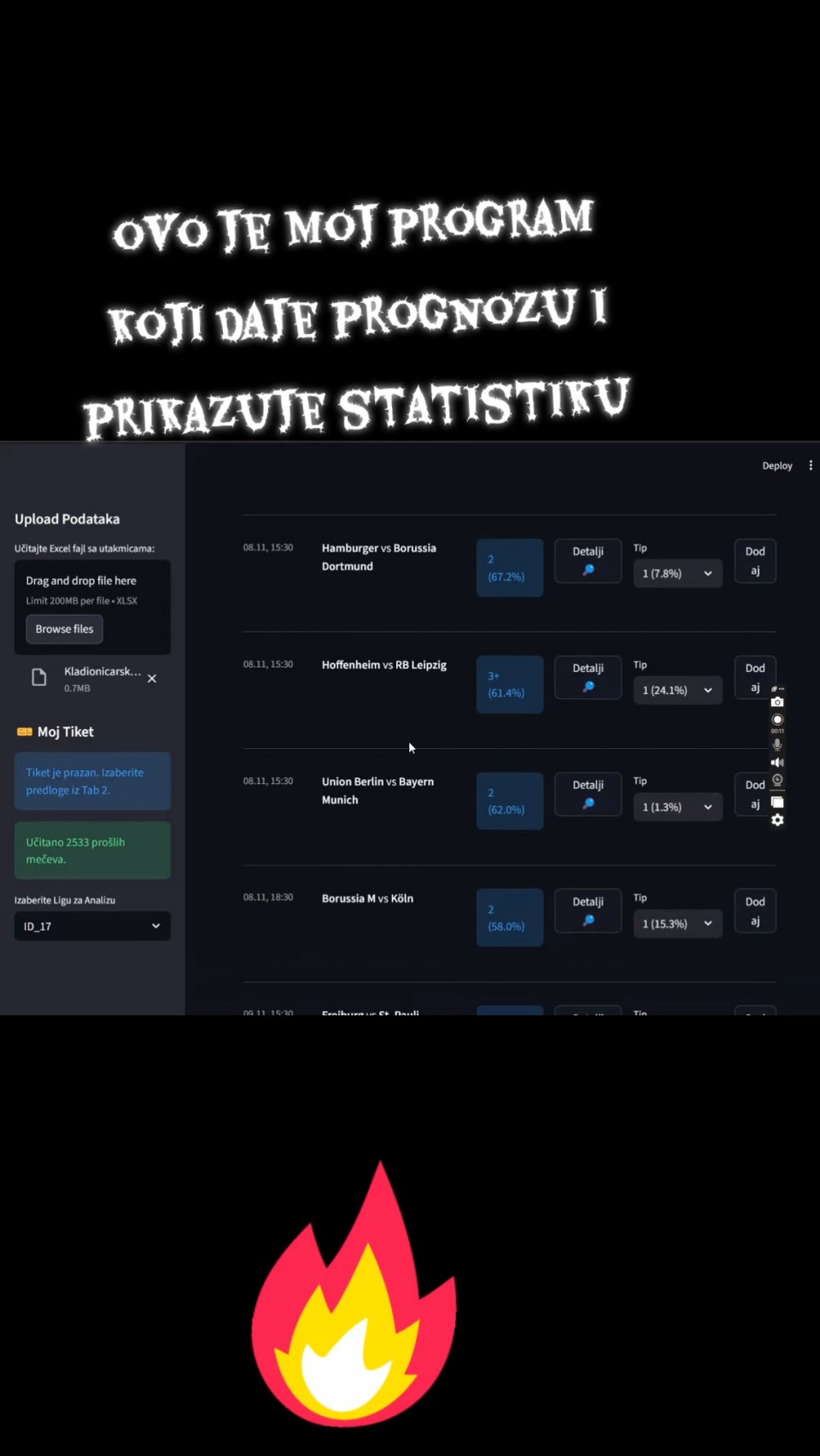 Ovo je moj program koji sam napravio i daje prognozu za utakmice nisu ni dojave ni sigurice cisto predlozi da probam ima dosta i statistike o mecevima pa da vidimo akko ce da prodje