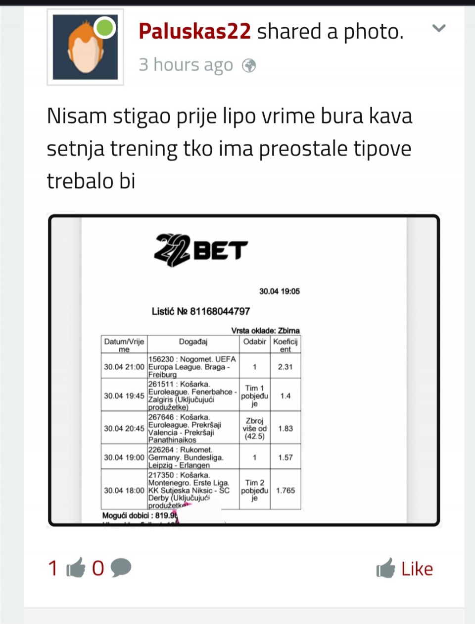 Ko ima ovog molina 80posto da ce dobit treba mu za finale ovaj drugi je proso nisam stigao prije 1.70 koefcijent