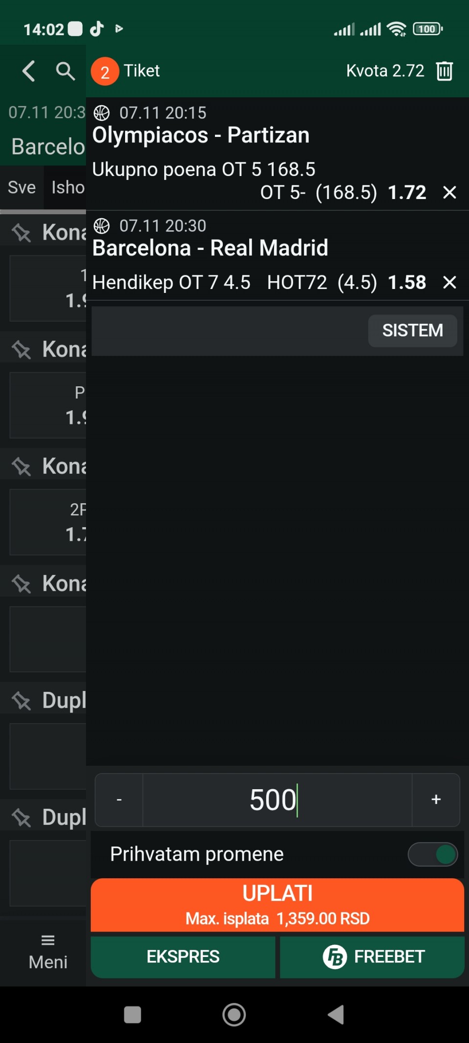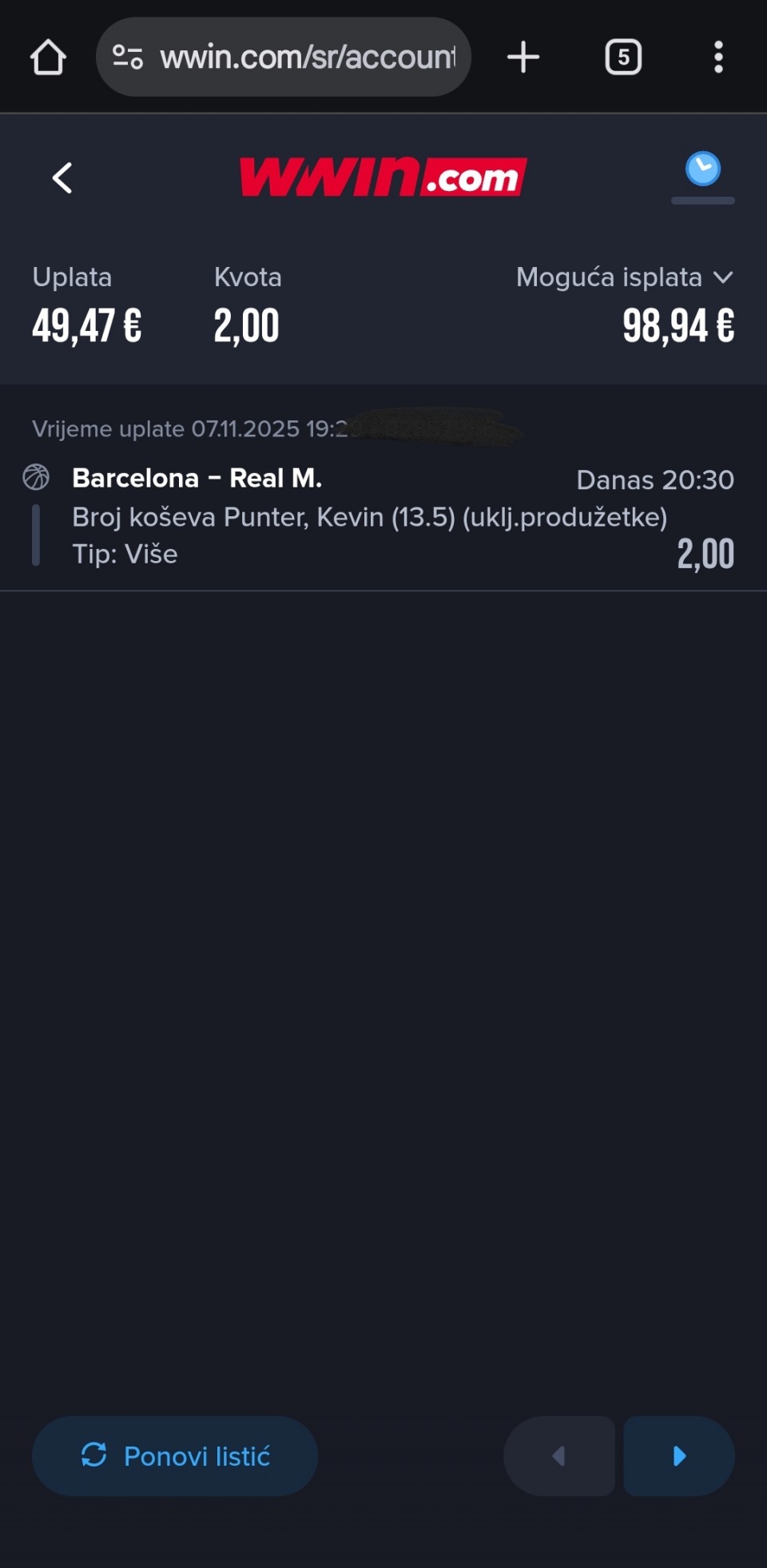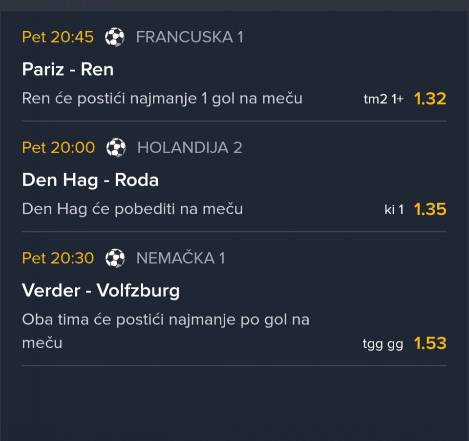 07.11.2025. 20:00h Eindhoven - Den Bosch; tip: X; kvota: 3.70; uplata: 180,00 din.; isplata: 666,00 din.